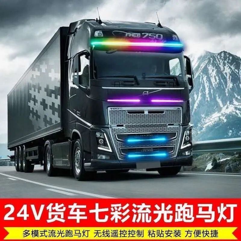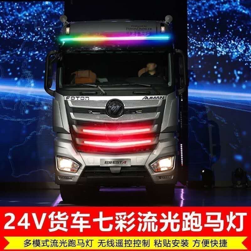 货车24V伏专用中网灯流光跑马灯七彩爆闪遮阳板挡灯游侠灯改装 饰
