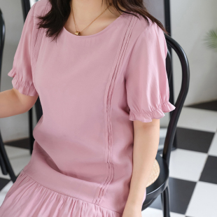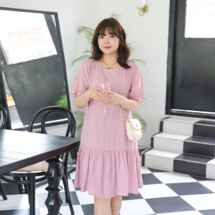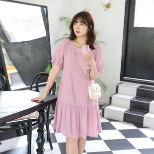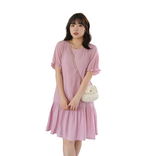 甜美气质宽松公主裙 抽褶雪纺连衣裙胖MM夏装 蓝若水大码 女装