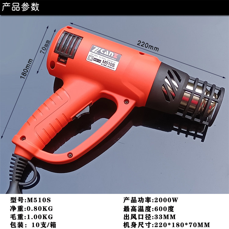 ZcanZ卓能防烫热风枪大功率调温电烤枪汽车贴膜收缩膜5米加长线