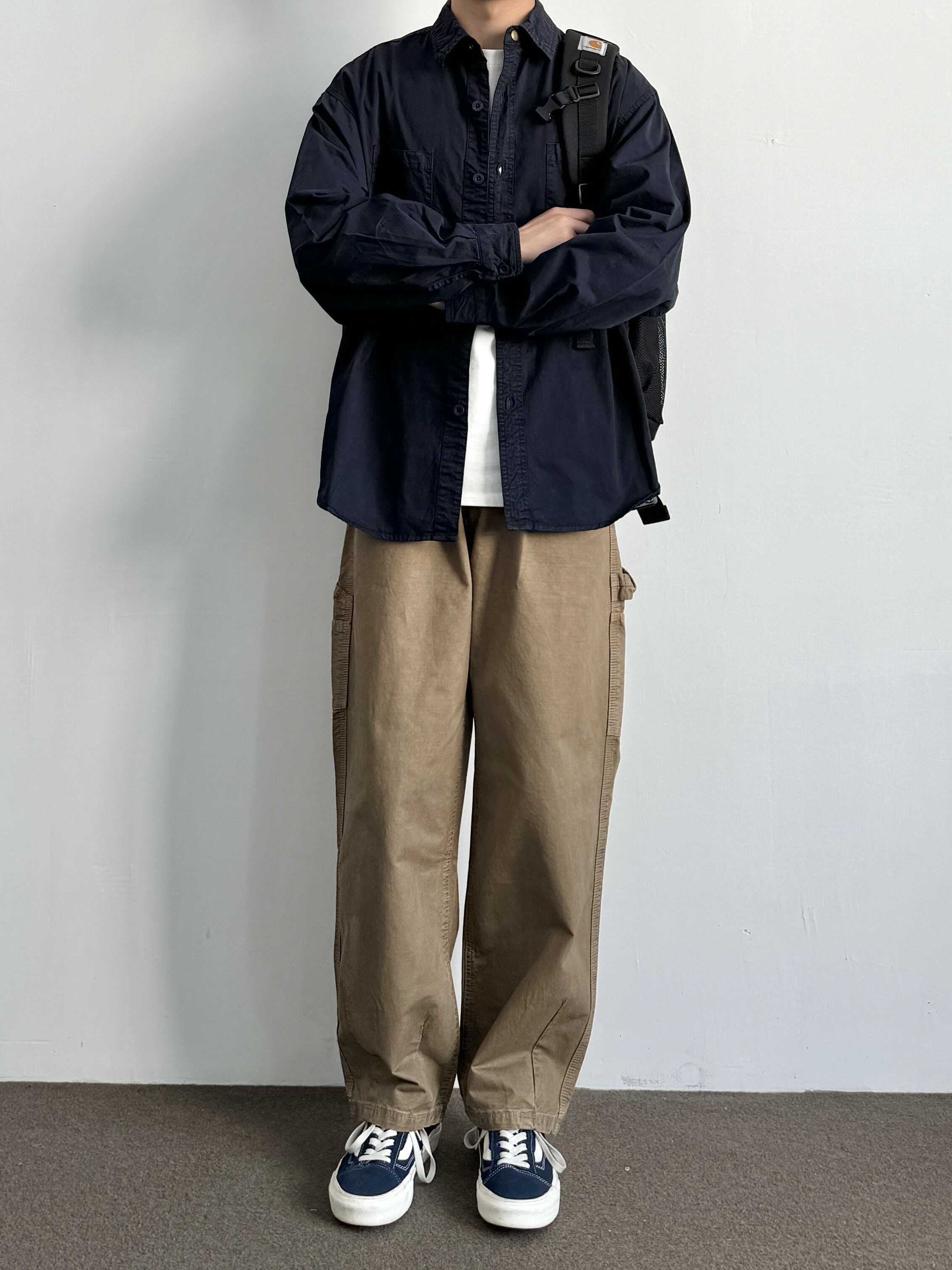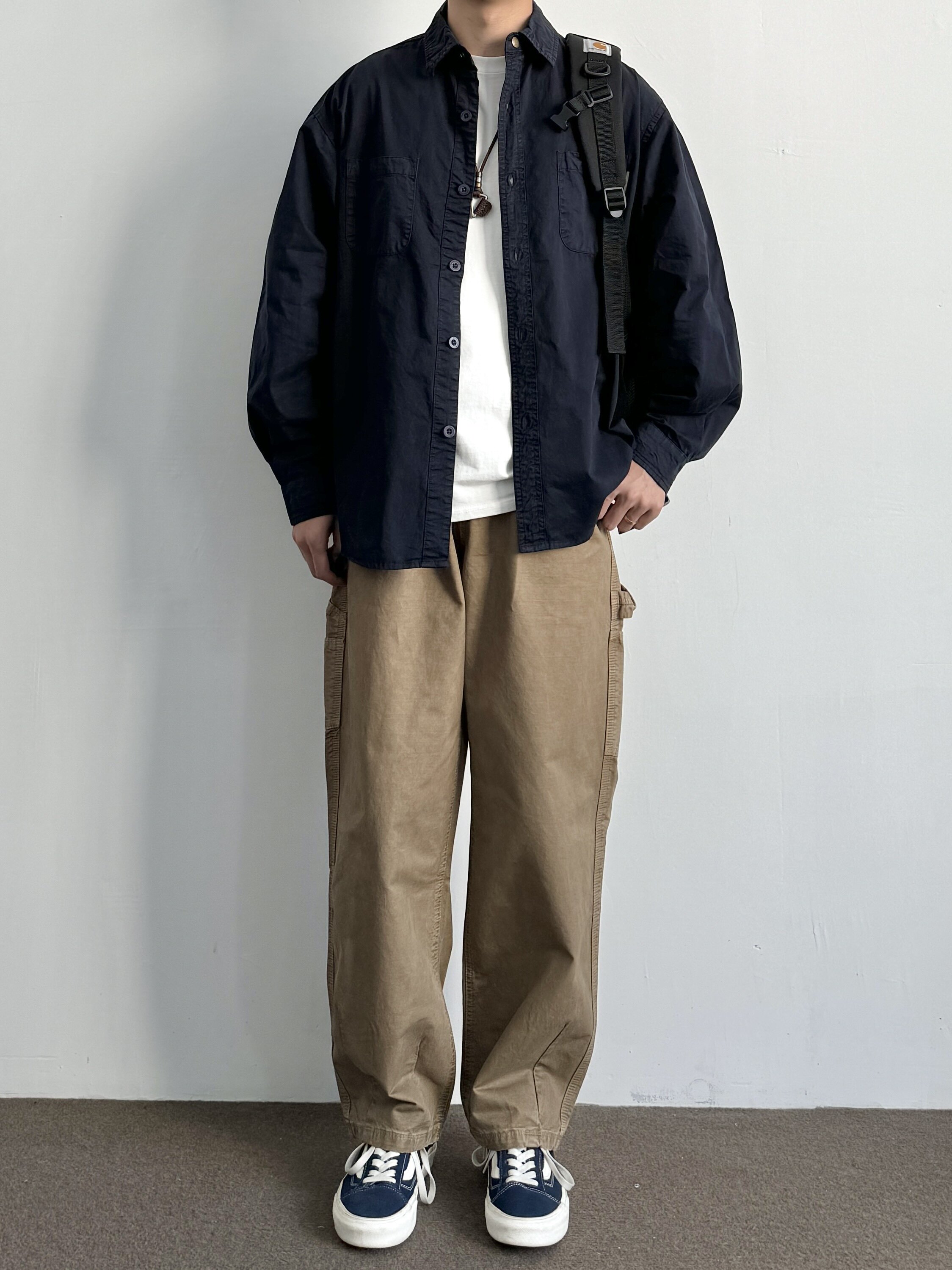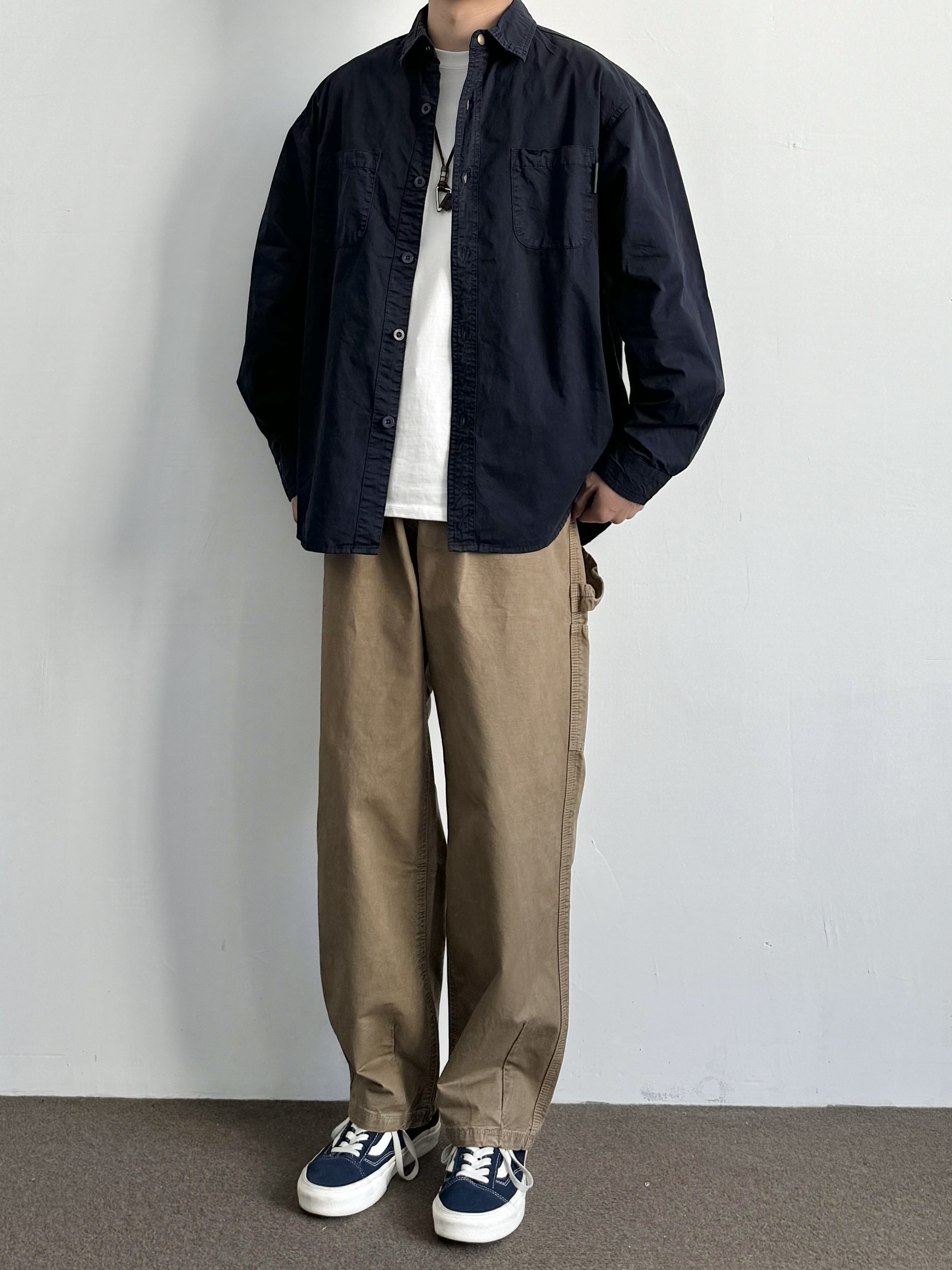 秋季 ONUN 长袖 衬衫 男水洗做旧纯棉宽松衬衣潮 日系复古双口袋工装