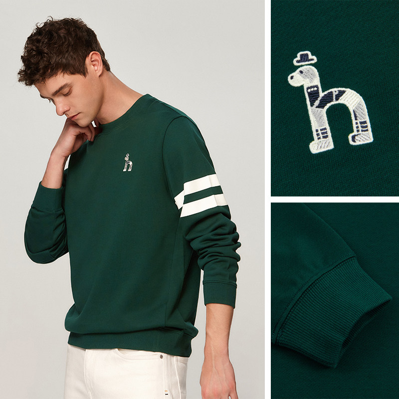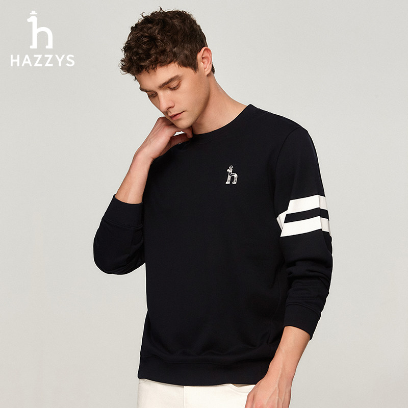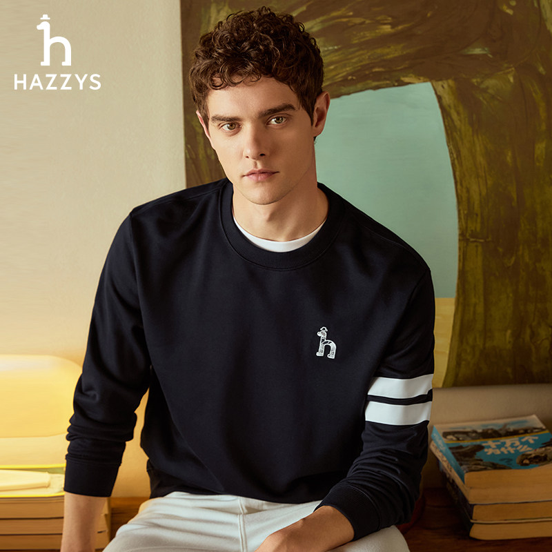 Hazzys哈吉斯秋季 T恤宽松休闲圆领卫衣男条纹撞色通勤上衣潮 长袖
