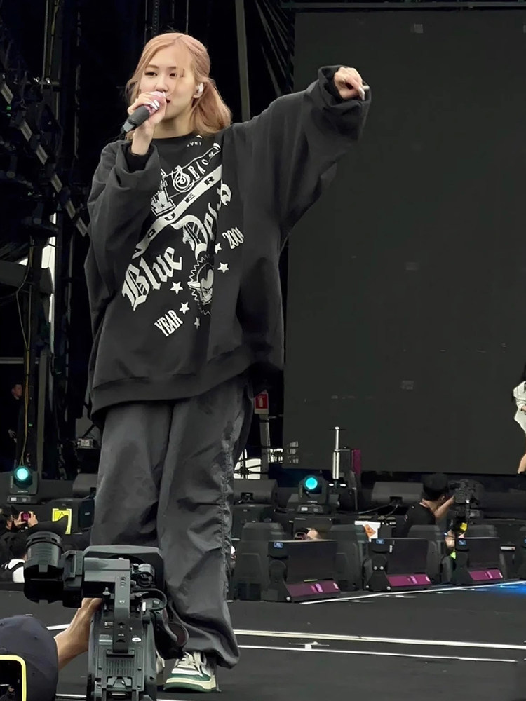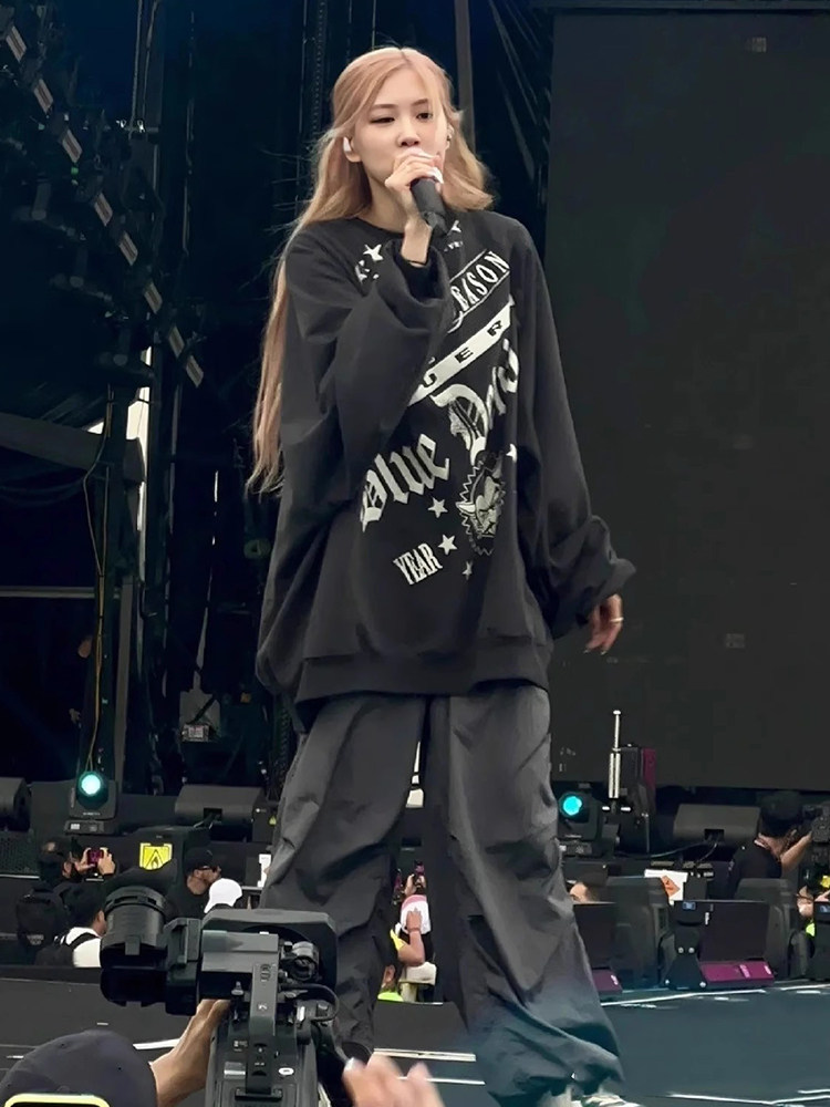 朴彩英同款 复古高街oversize卫衣女早秋宽松潮牌印花上衣外套 美式