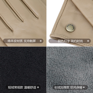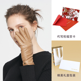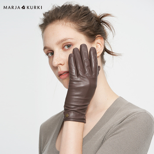MARJAKURKI玛丽亚古琦可触屏绵羊皮加绒保暖手套女士冬季 真皮手套