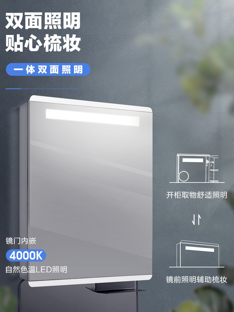 智能浴室镜柜卫生间镜子带灯收纳镜面柜不锈钢镜柜挂墙式 单独定制