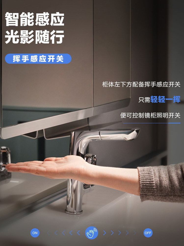 简约奶油风陶瓷一体智能浴室柜镜柜组合卫生间收纳洗漱台洗脸盆