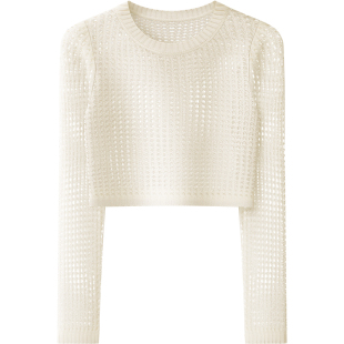女外搭吊带配裙上衣宽松罩衫 秋季 套头针织衫 长袖 防晒 镂空高腰短款