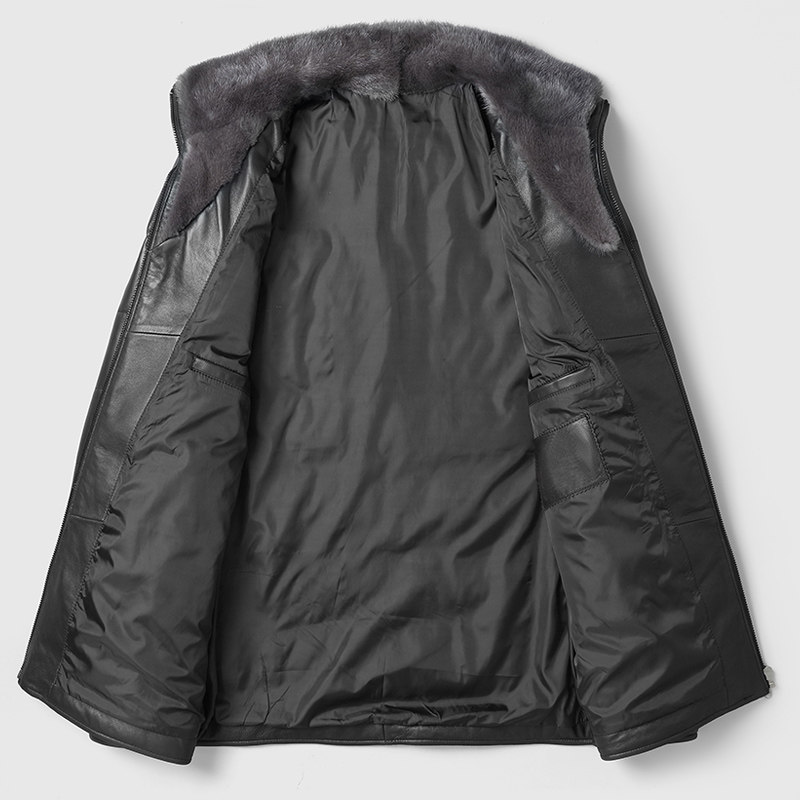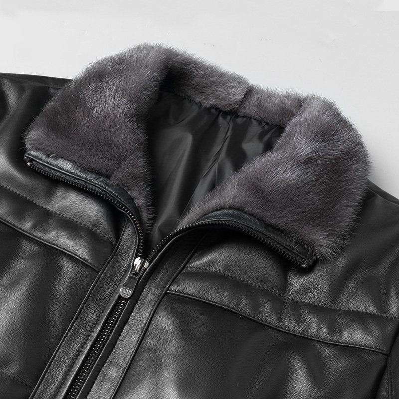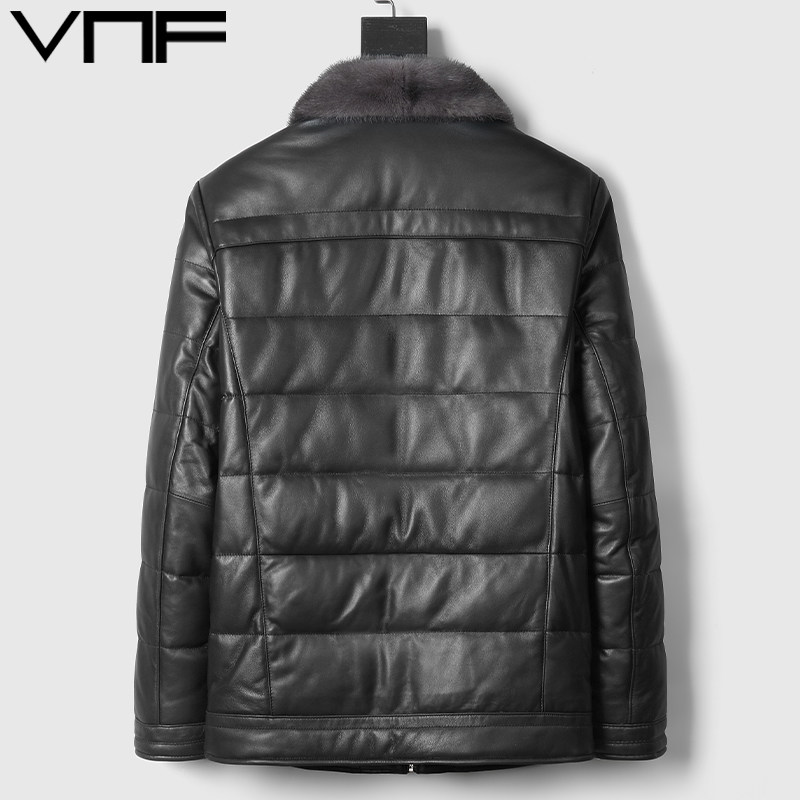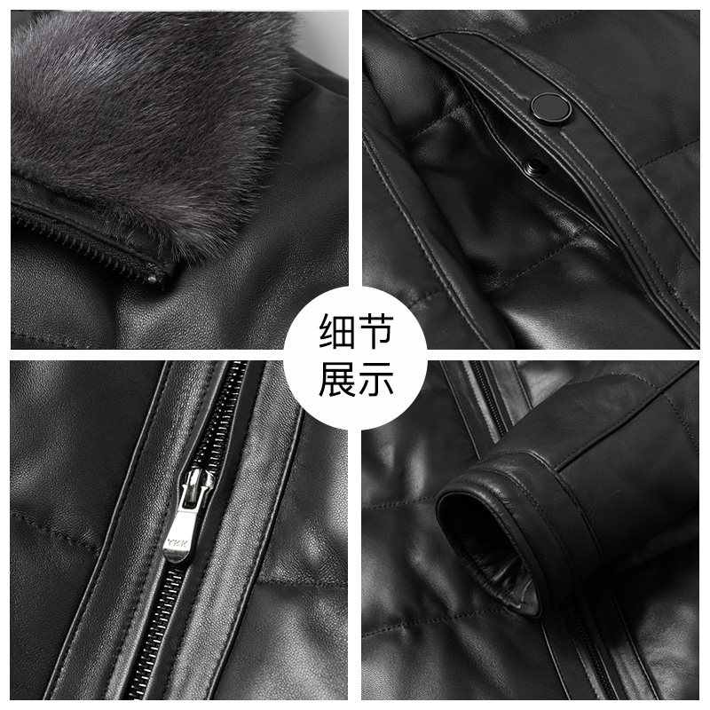 海宁真皮羽绒服男绵羊皮短款 水貂毛领中老年爸爸加绒皮夹克外套冬