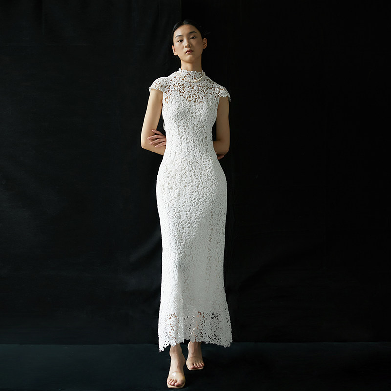 欧洲 连衣裙 古董工艺蕾丝全手缝 旗袍感 轻礼服 改良式 cicidream