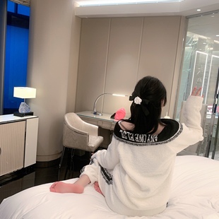 学生格纹家居服 珊瑚绒加厚加绒紫色高领外套装 卡之恋冬季 睡衣女款