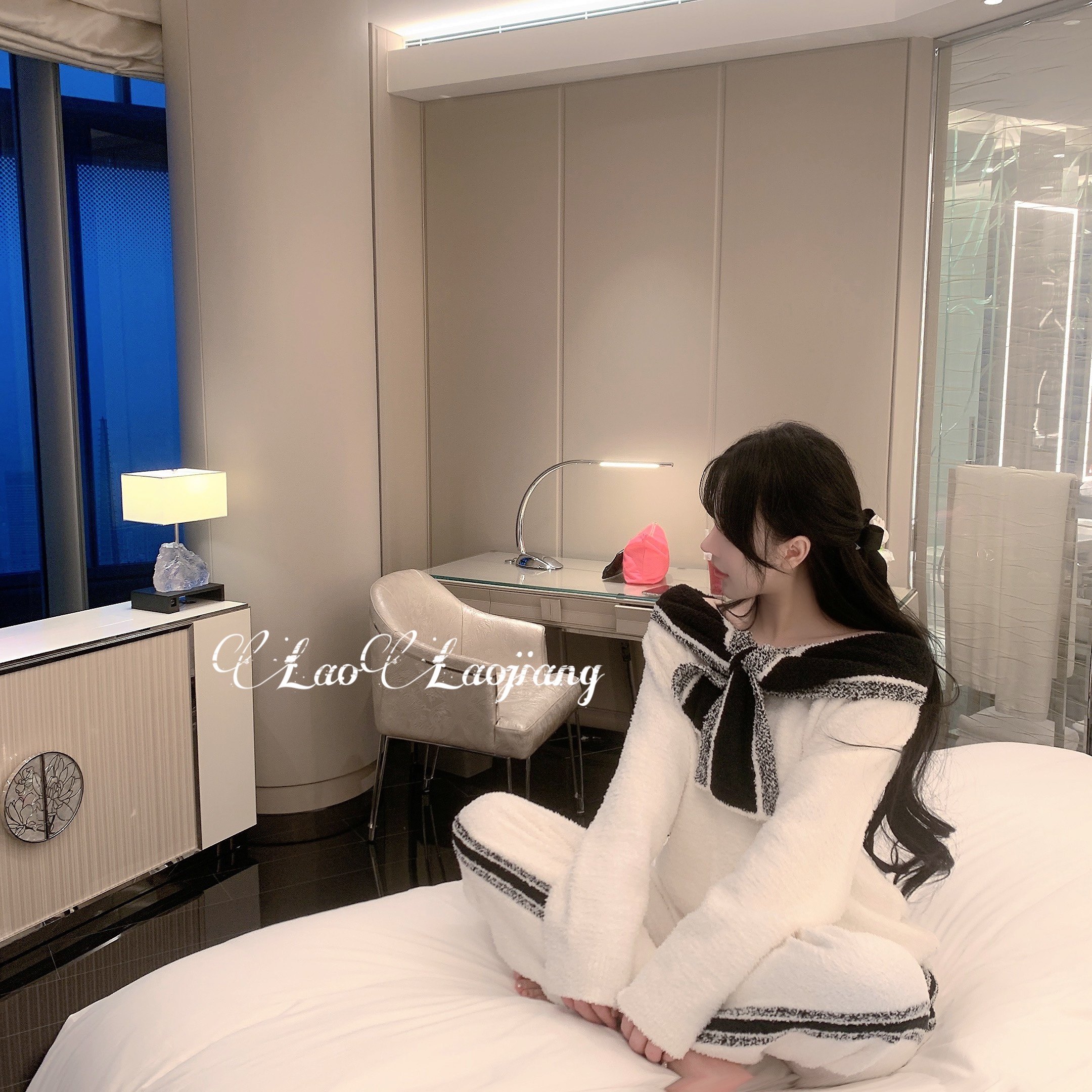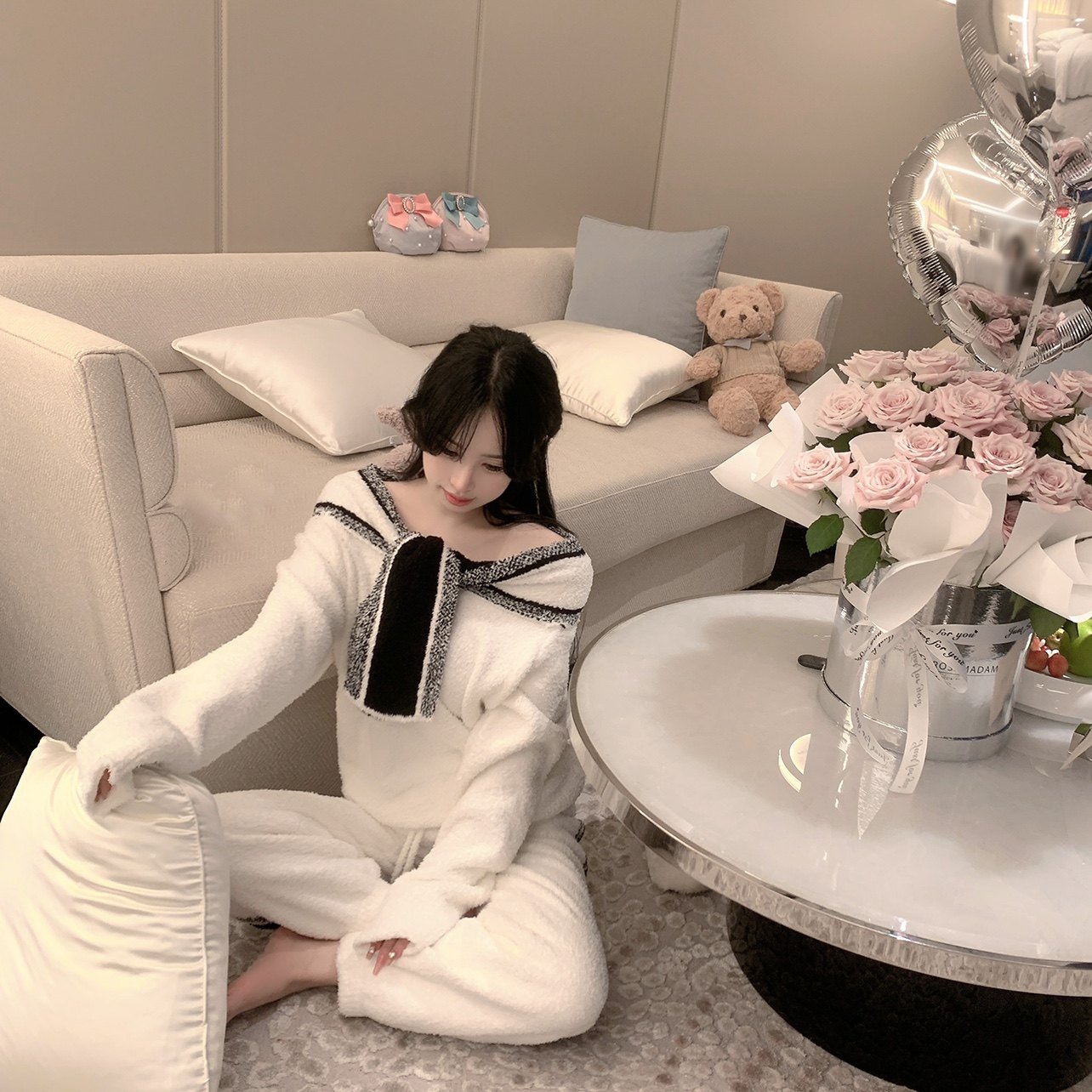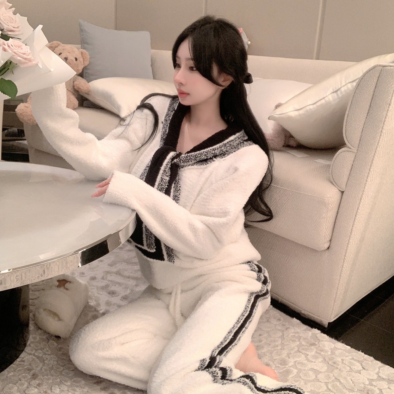 珊瑚绒家居服法兰绒加厚冬天加绒保暖可外穿套装 睡衣女秋冬款 冬季