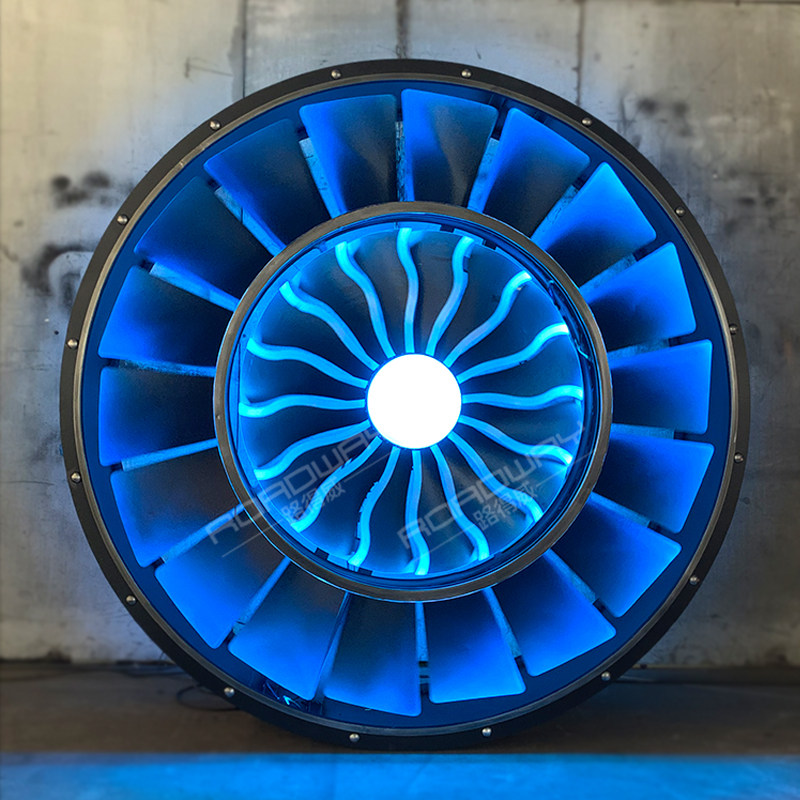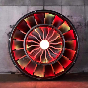 复古工业风酒吧飞机引擎涡轮双向转动风扇铁艺全彩背景氛围灯装 饰