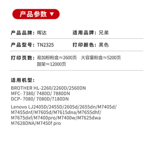 hl2260 7480d打印机7880 7180dn联想M7400Pro硒鼓M7605d墨盒LT2451 mfc7380 晖达适用兄弟DCP7080D粉盒tn2325