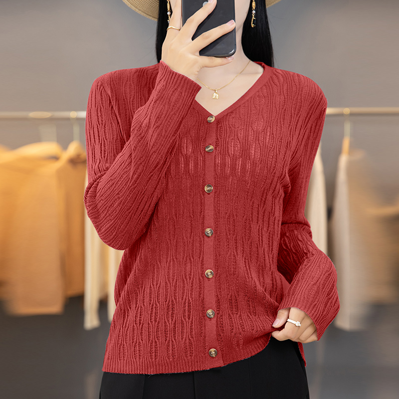 开衫 针织衫 女精仿羊毛针织衫 外搭薄款 外套 初秋季 时尚 V领镂空长袖