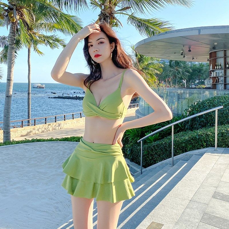 泳衣女温泉海边度假 防晒比基尼绝美大码 2025新款 分体聚拢性感罩衫