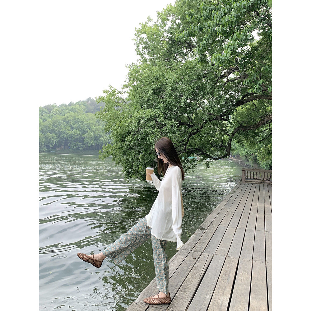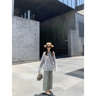 大小姐77重磅100亚麻印花定纺高级感夏日清凉透气花色休闲裤 9分裤