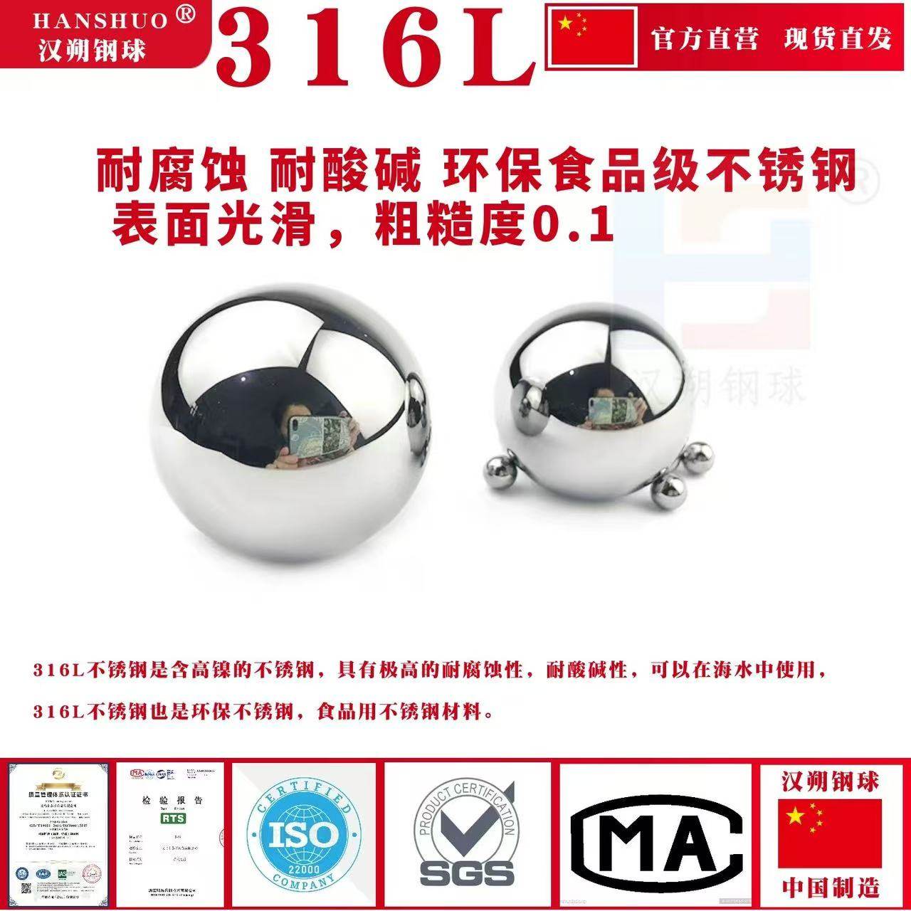 100毫米实心不锈钢珠 316L不锈钢球2mm6