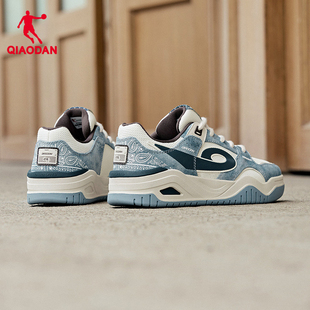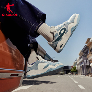 皮面冬季 运动男板鞋 青少年潮流增高 2025新款 启承乔丹牛仔蓝滑板鞋