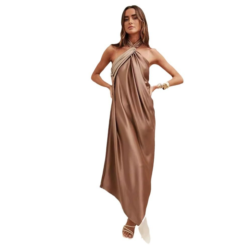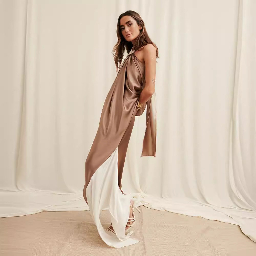 Hanging Neck Satin Dress 连衣裙 Sexy Evening Splicing