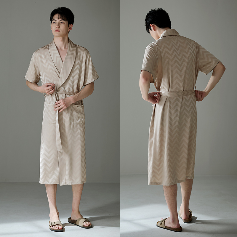 一体式 轩靓睡袍男士 冰丝绸短袖 薄款 睡衣轻奢高级感浴袍家居服 夏季