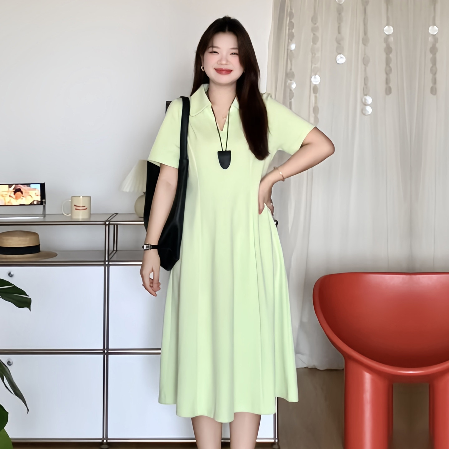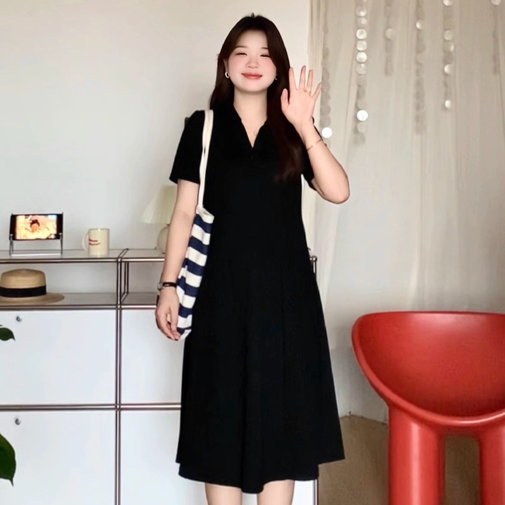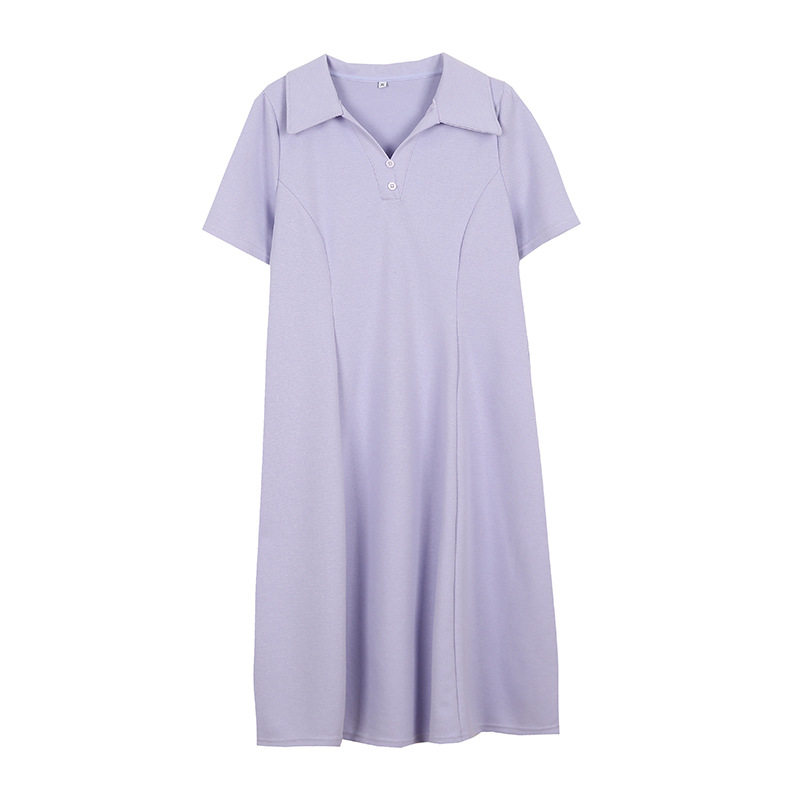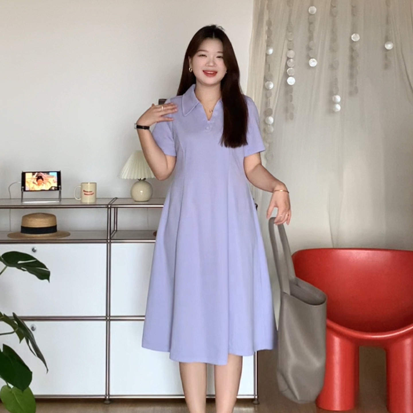 巨好看 微胖 胖mm夏装 女装 收腰显瘦紫色Polo连衣裙0199 喵喵大码