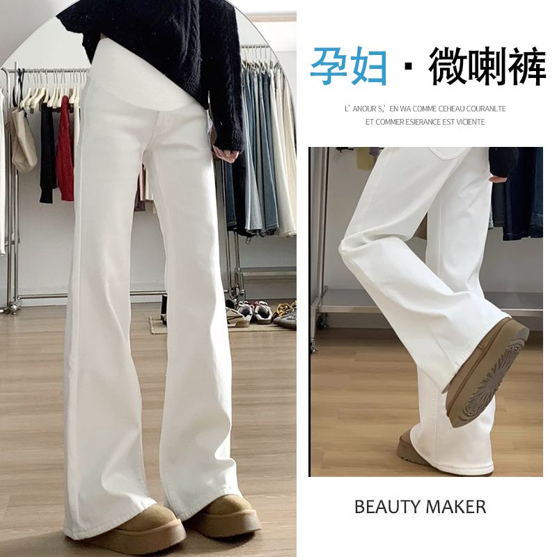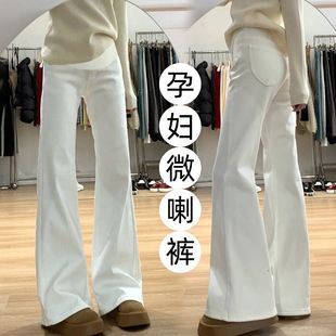 孕期拖地长裤 白色孕妇微喇叭牛仔裤 2025新款 加绒冬装 子外穿秋冬季