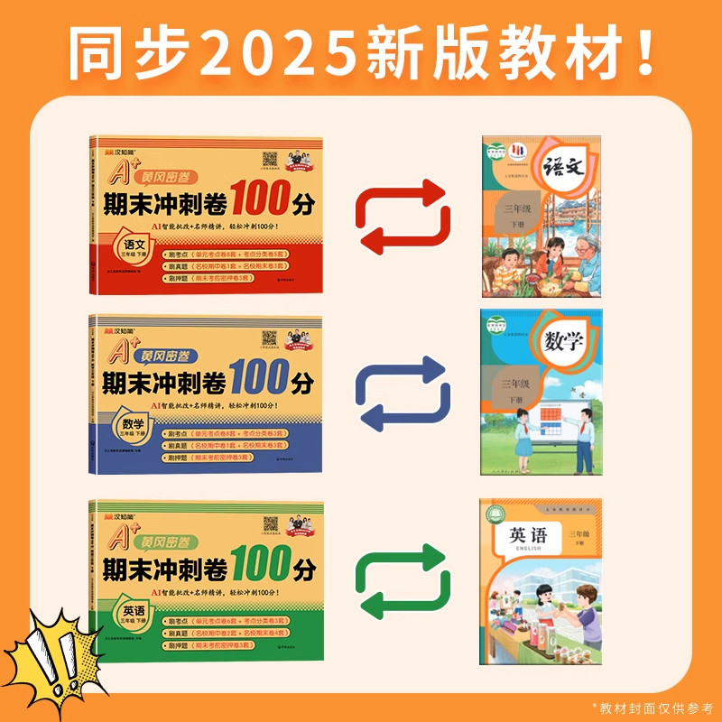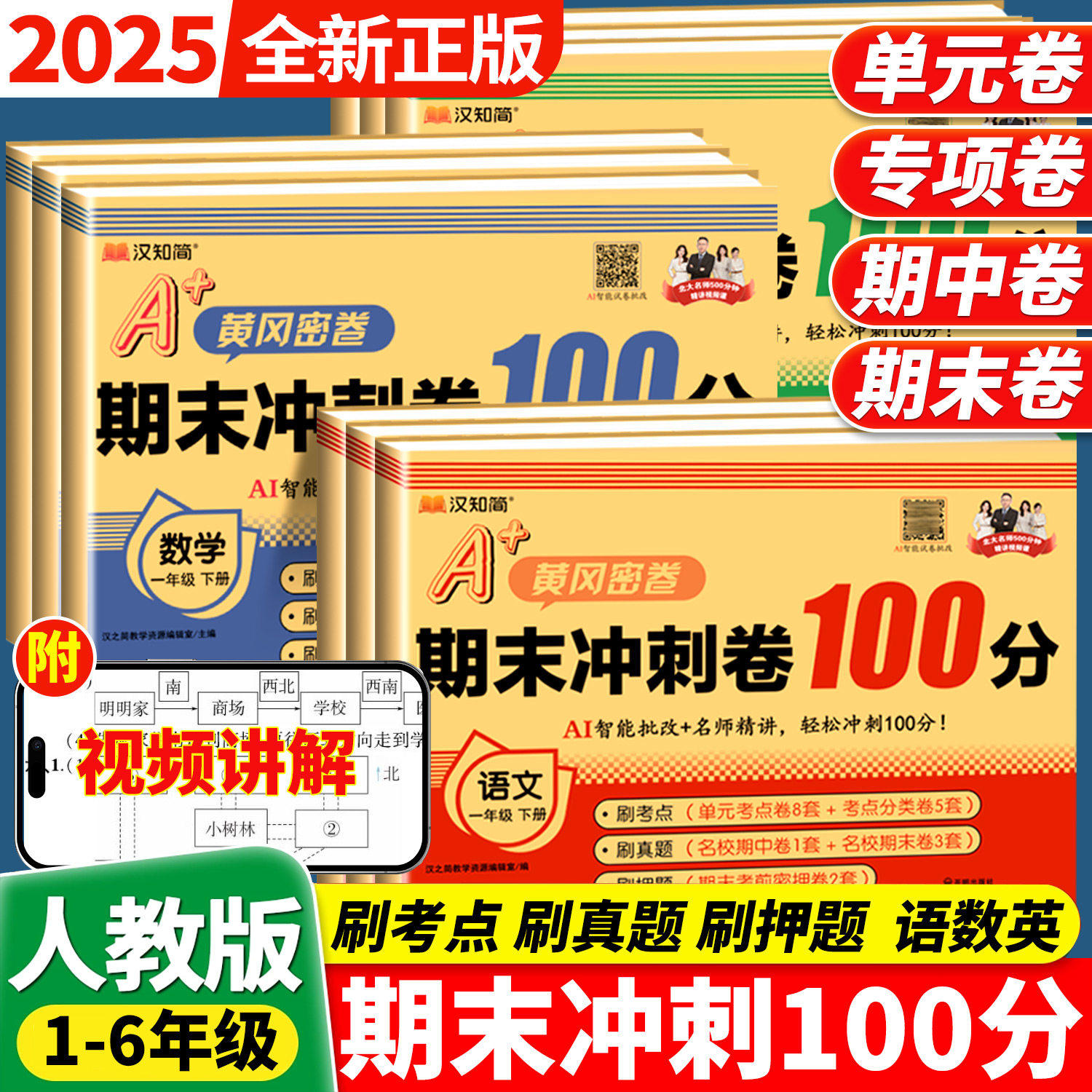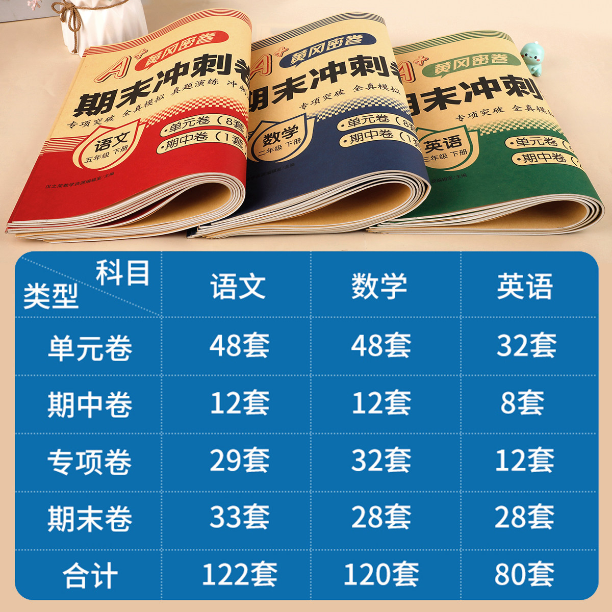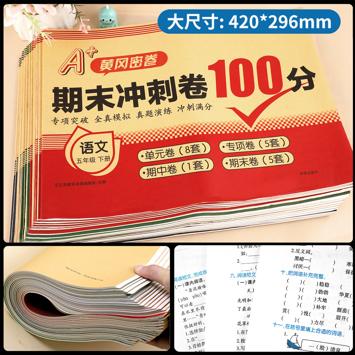 黄冈期末冲刺100一百分小学生一二年级三年级四年级五年级六年级同步练习上下册语文数学英语测试卷子全套人教版 月考模拟考试 单元