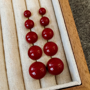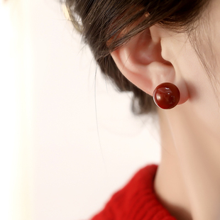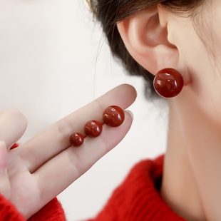 安可拉红珍珠耳钉女2025新爆款 复古S999纯银针耳环养耳洞新年耳饰