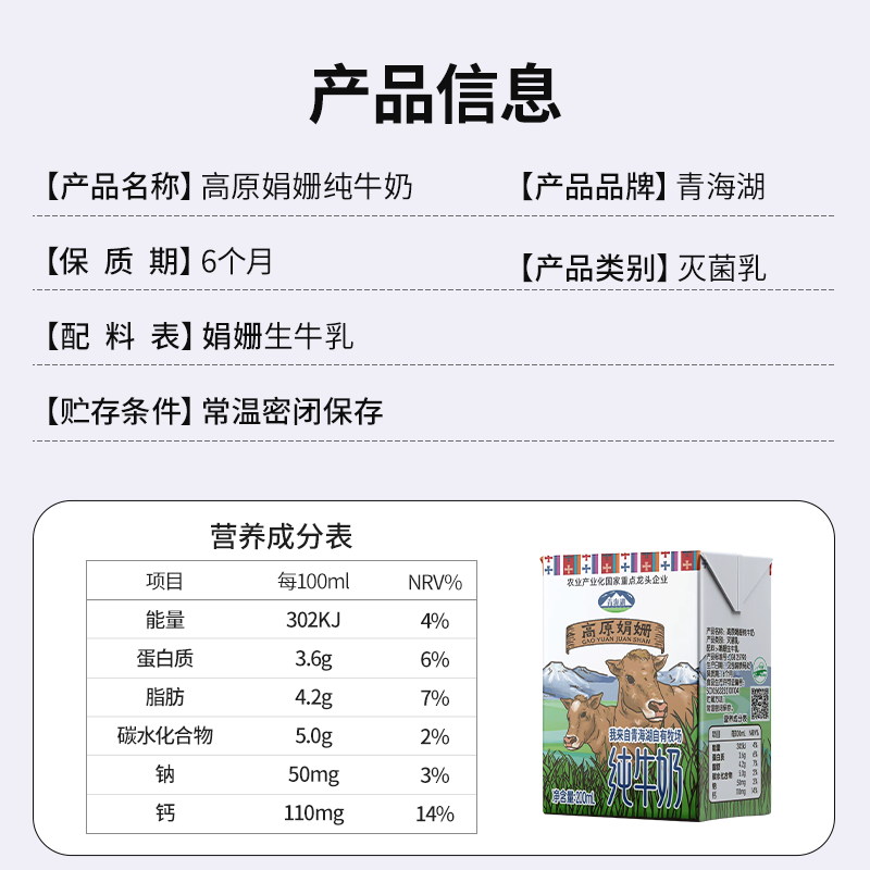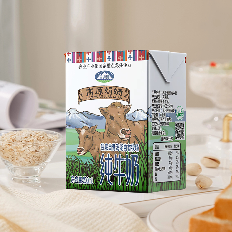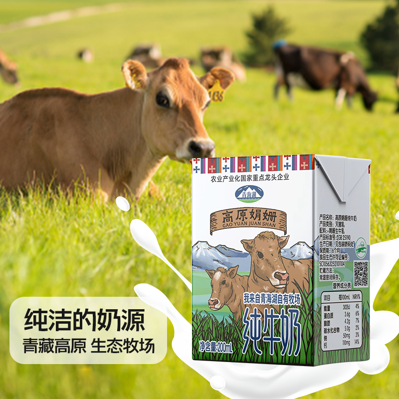 青海湖高原娟姗纯牛奶整箱200ml 10盒高温灭菌生牛乳营养早餐牛奶