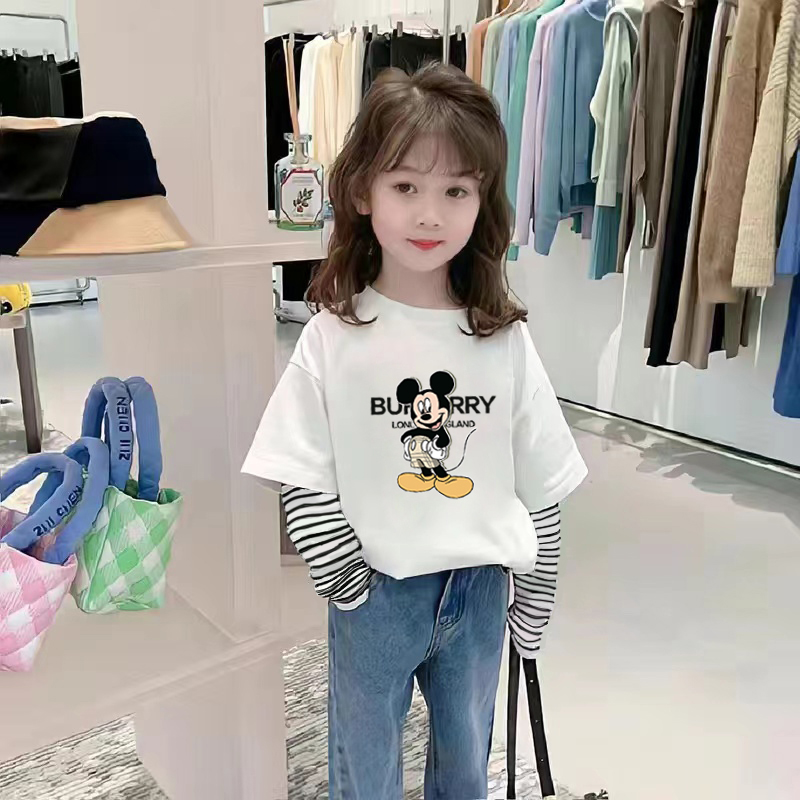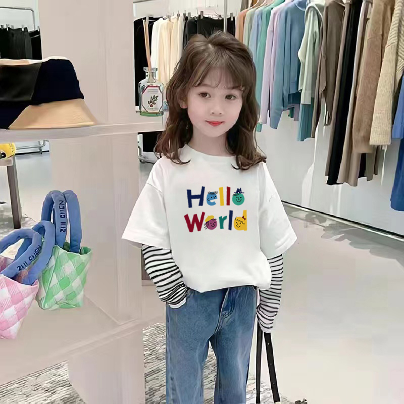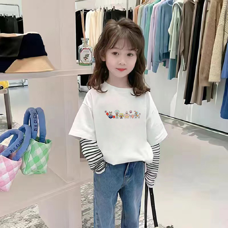 儿童宝宝洋气百搭休闲上衣 韩版 纯棉女童拼接条纹长袖 T恤春秋新款