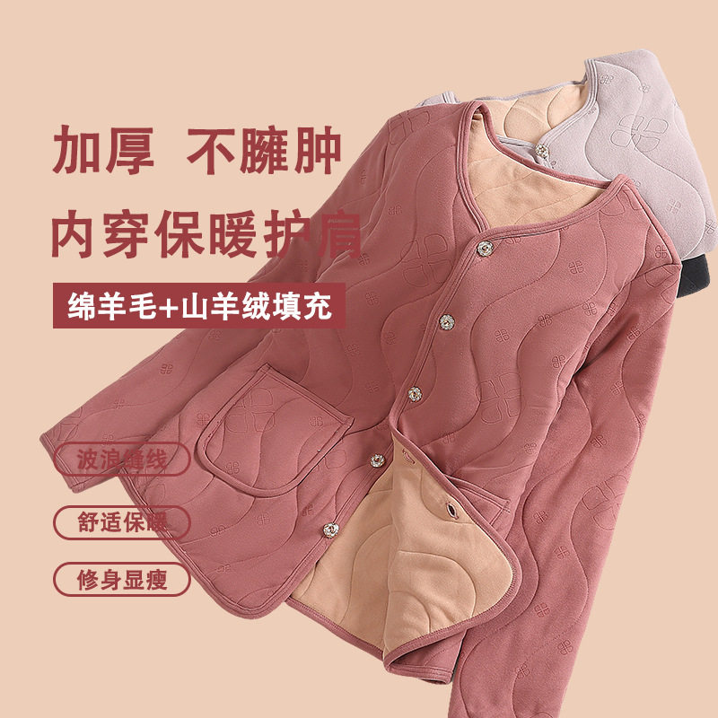 护肩护腰马甲女棉袄中老年冬装 加绒短袖 加厚护背小棉衣 女装 妈妈装