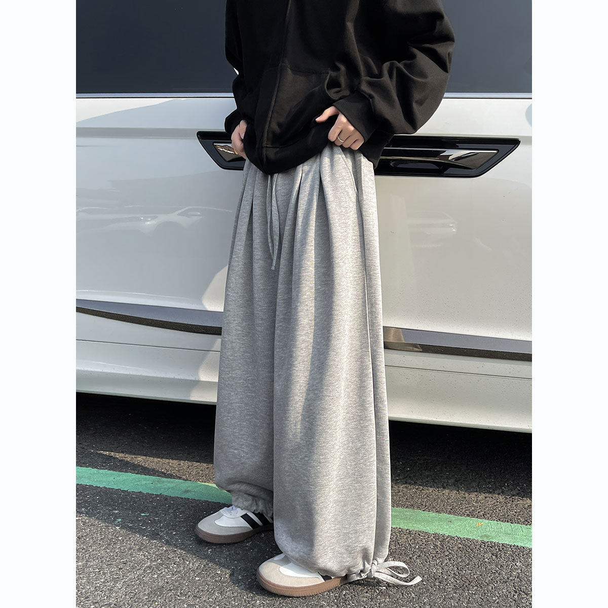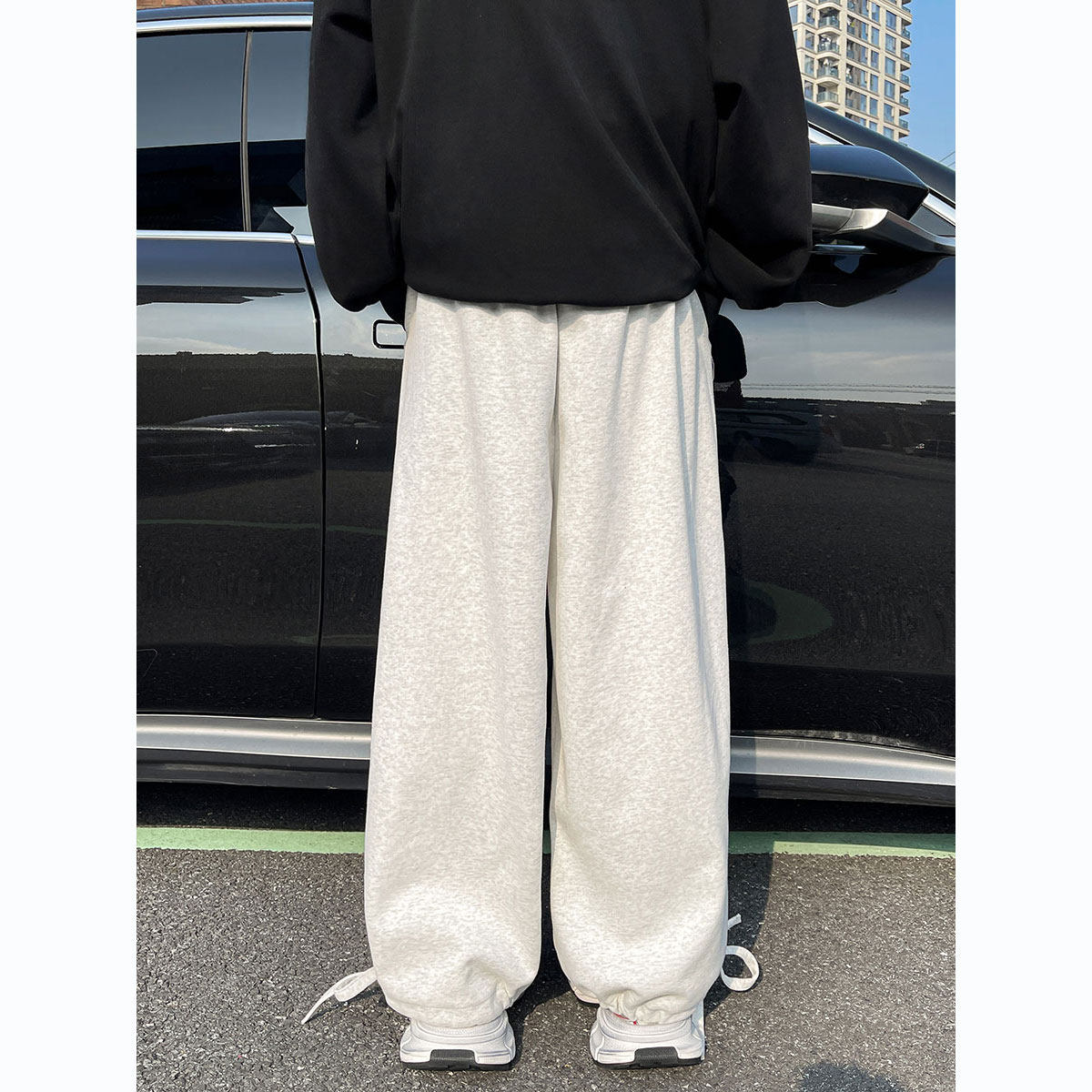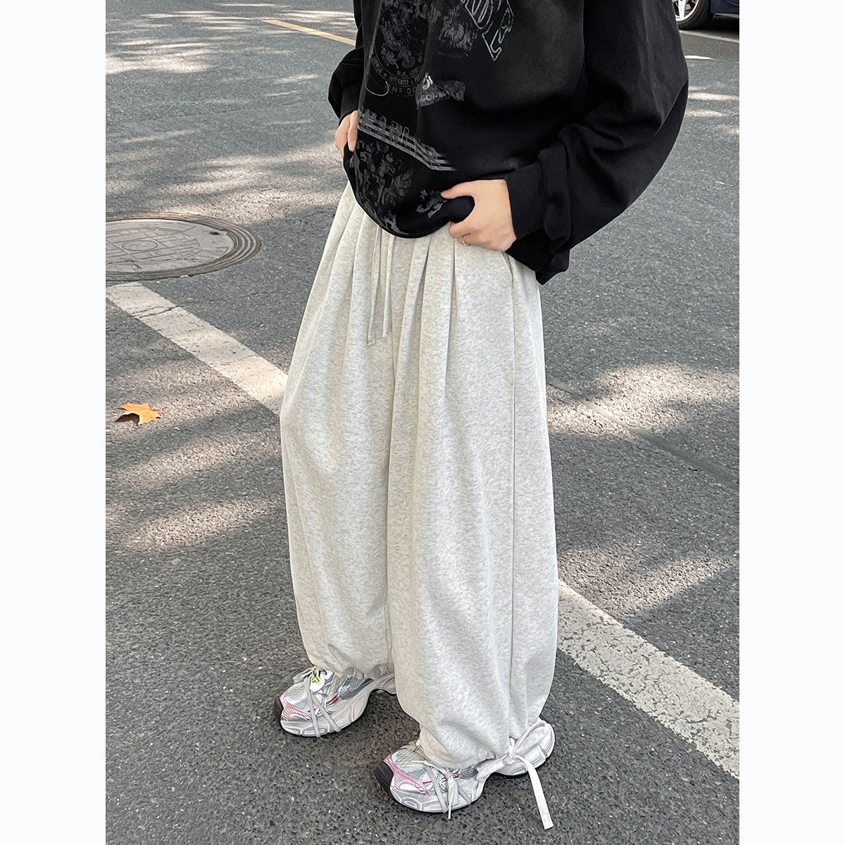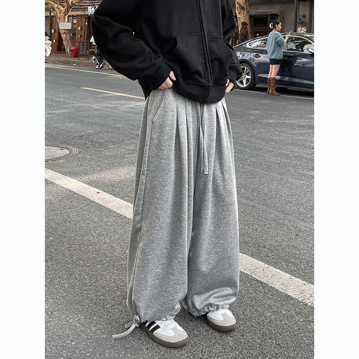 子潮流简约百搭宽松加厚直筒阔腿裤 男生裤 加绒灯笼束脚卫裤 秋冬款