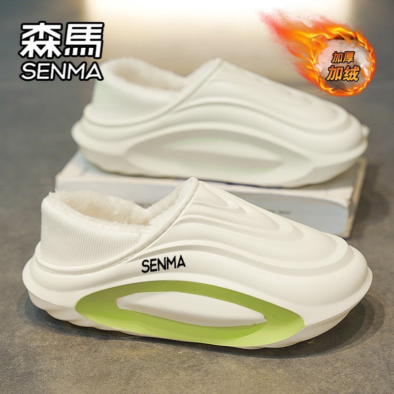男冬季 防水防滑外穿拖鞋 2025新款 男士 加绒保暖包跟棉鞋 森马棉拖鞋