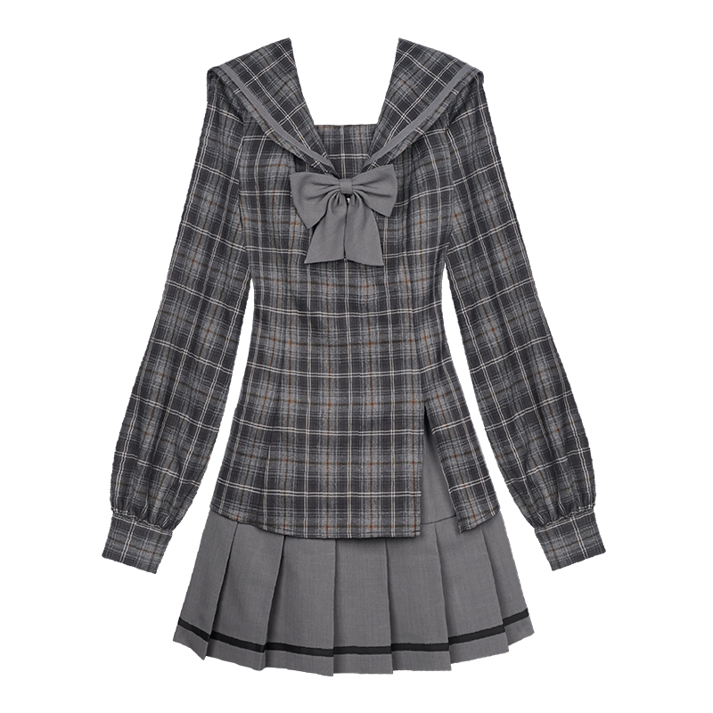 SagiDolls少女斗志 常春藤学院风灰黑格水手领连衣裙外套甜酷修身