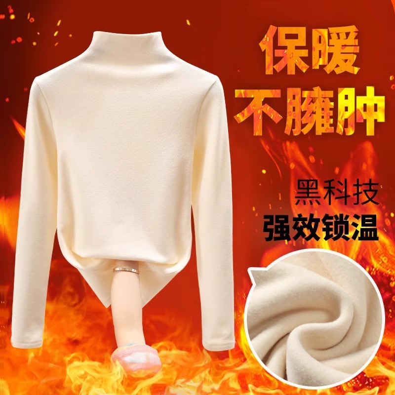 T恤加绒加厚上衣 小香风内搭长袖 双面德绒半高领打底衫 女秋冬新款