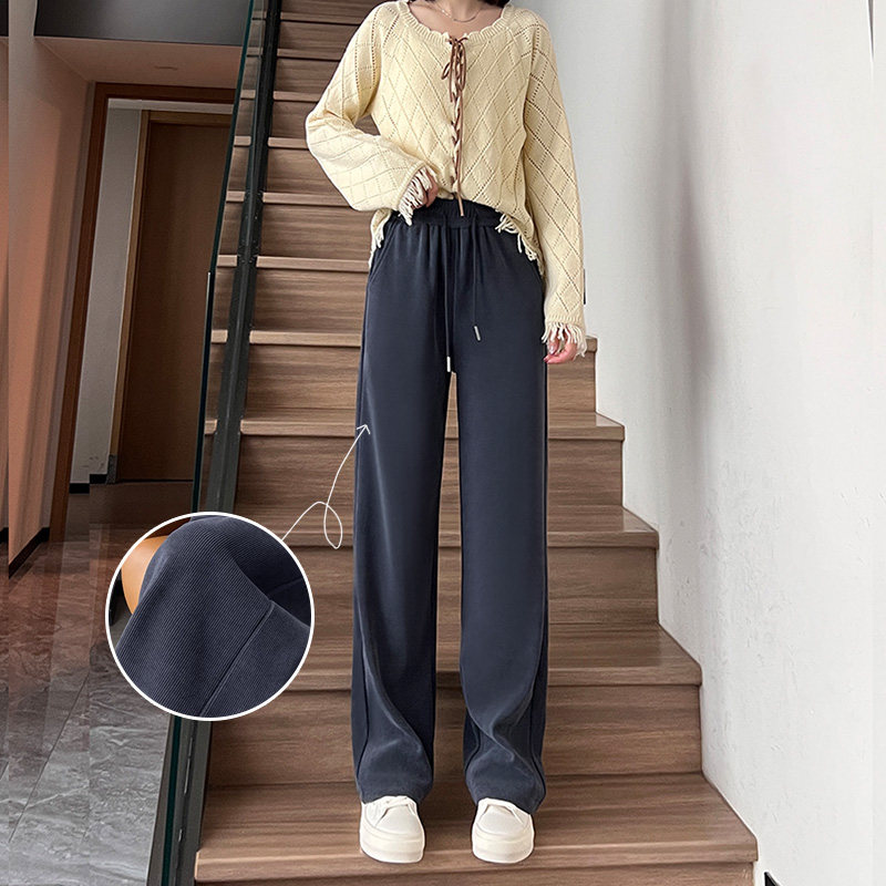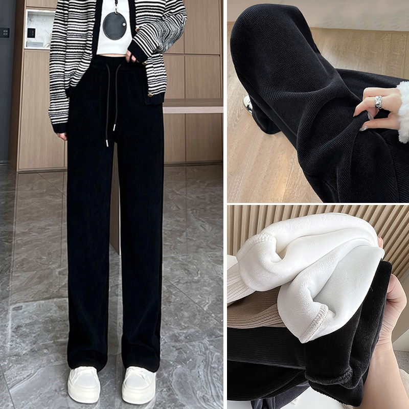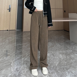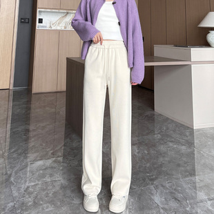 高腰垂感宽松显瘦遮胯百搭休闲裤 女秋冬季 子 直筒裤 加绒欧棉绒窄版