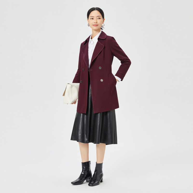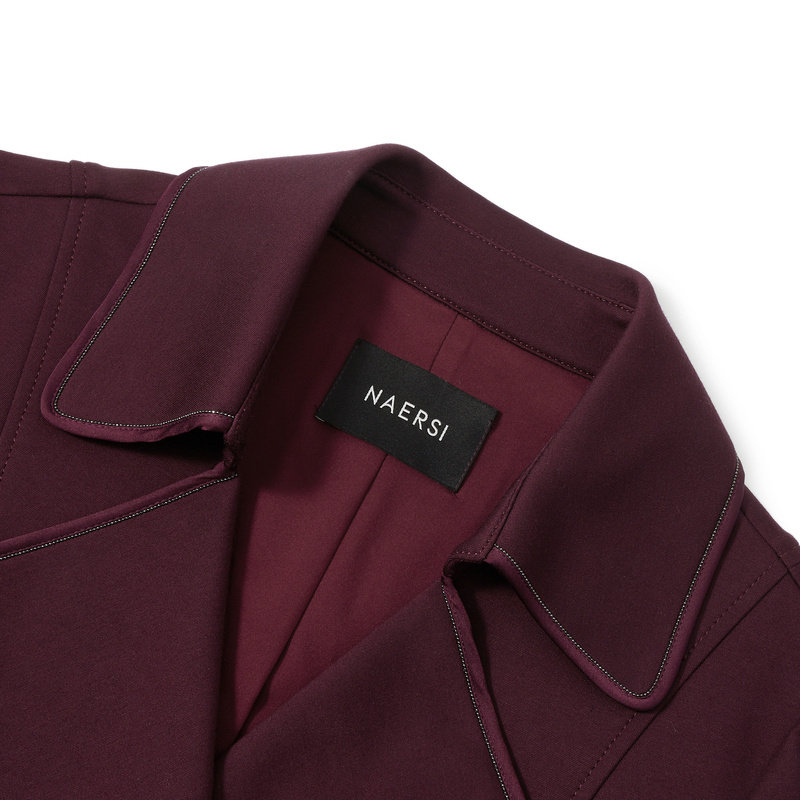 外套 饰春秋季 NAERSI娜尔思气质双排扣红色中长款 风衣女珠链装