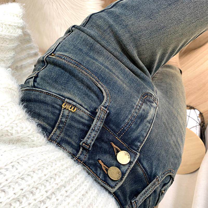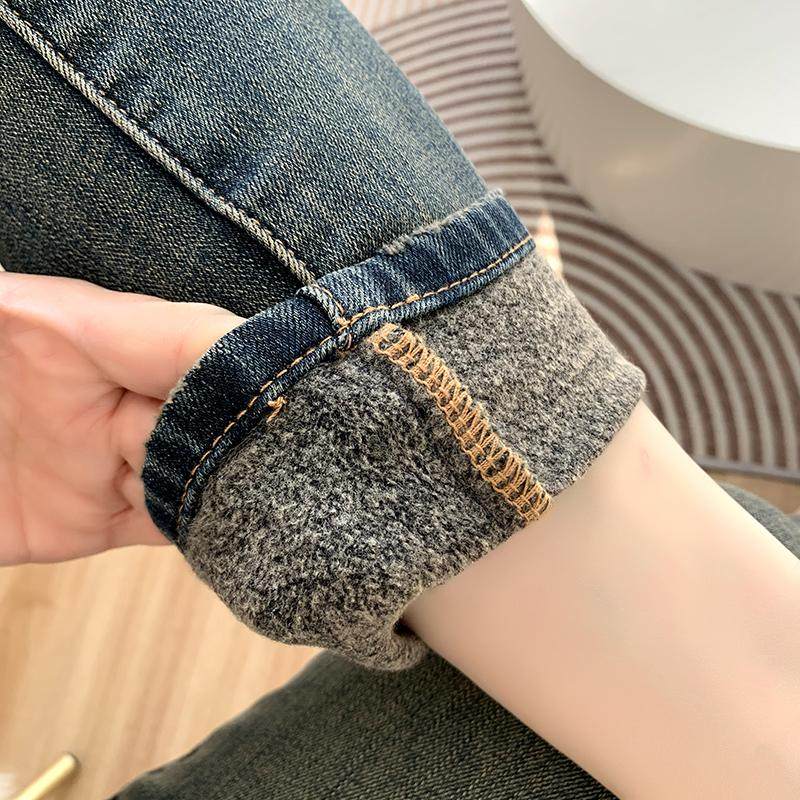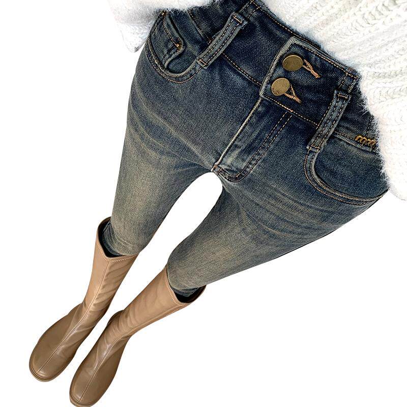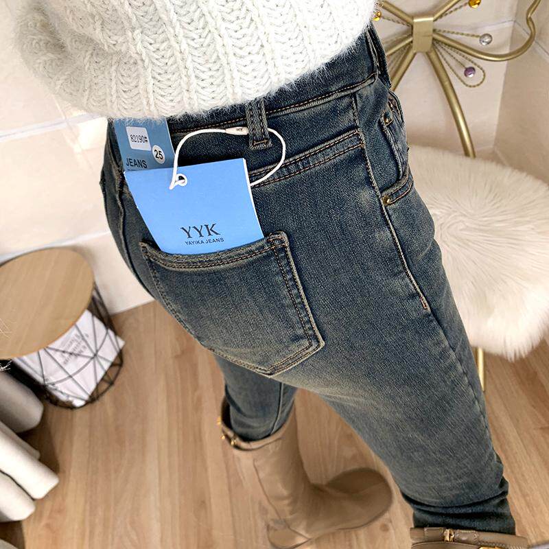 女加厚薄绒弹力紧身铅笔裤 水泥灰小脚牛仔裤 秋冬 时尚 洋气特显瘦