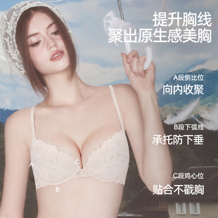好奇蜜斯蕾丝小胸聚拢内衣女纯欲文胸罩套装 大胸显小防下垂薄性感