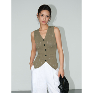 调性豹纹 小耳出品 不起球好打理 萣染棉线 V领套头马甲女 好穿