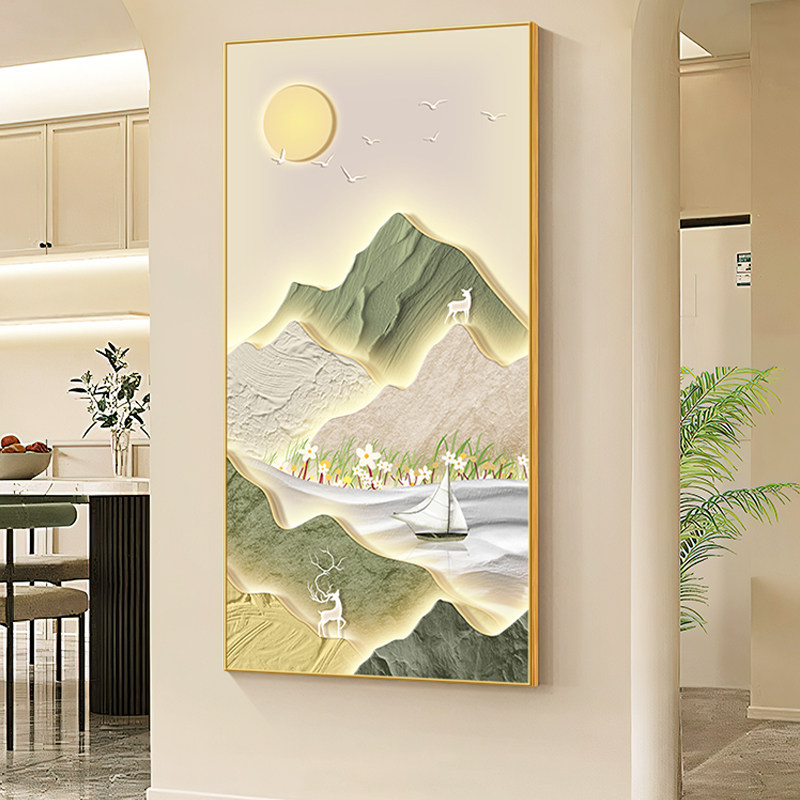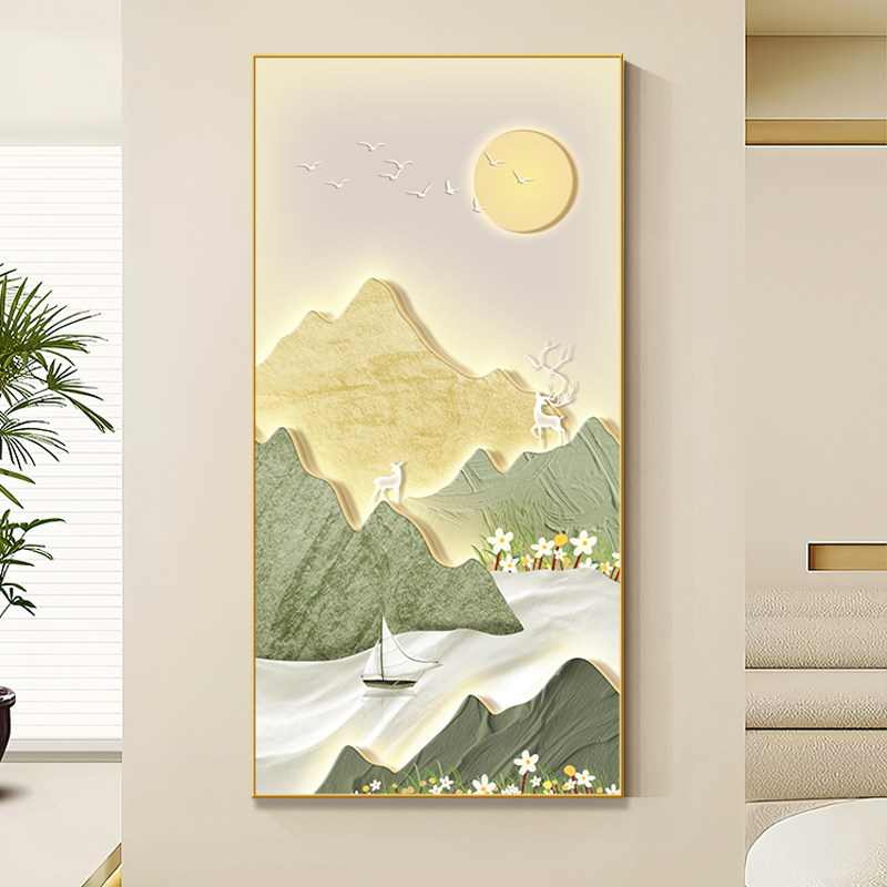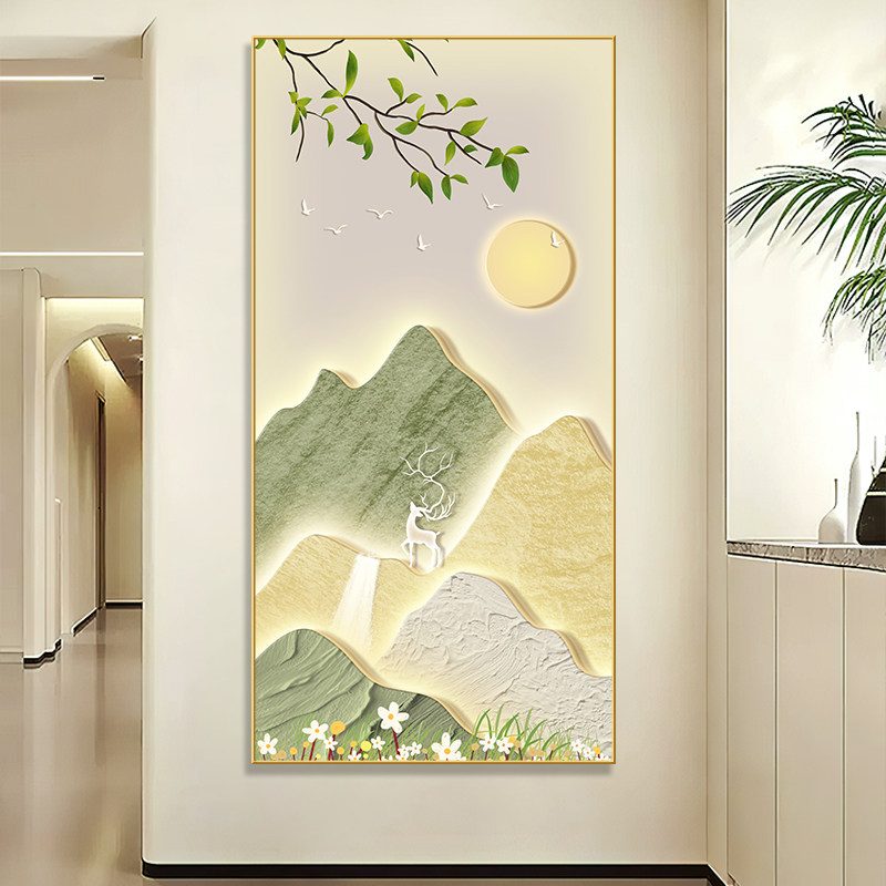 日照金山入户玄关装 饰画风景山水画高级感大芬油画村走廊过道挂画