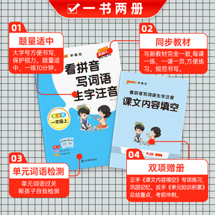 2025秋小学一年级上册下册学霸范看拼音写词语生字注音通用版 1年级字帖描红统编PASS绿卡图书周末测试作业 同步专项训练RJ人教版