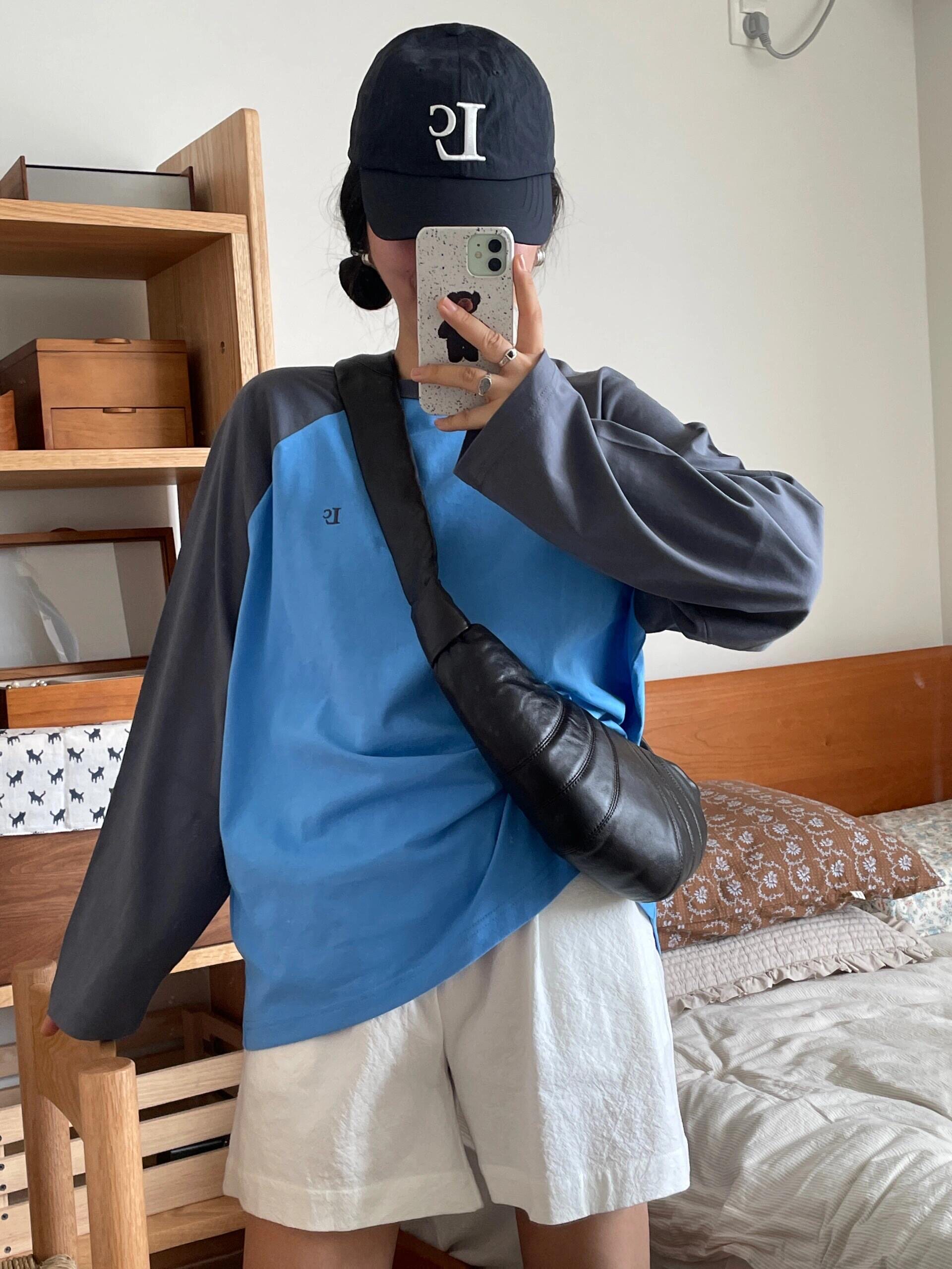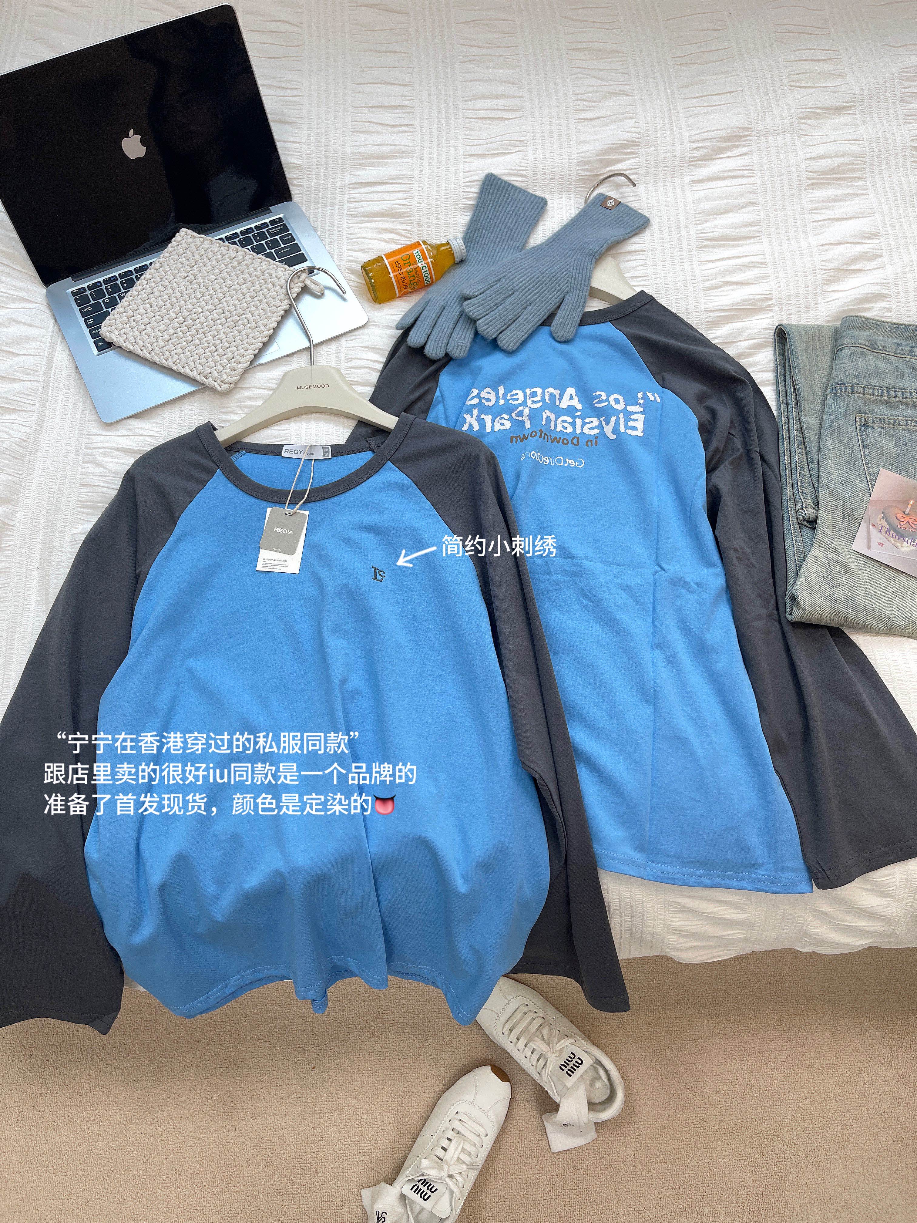 REコンテナ 风拼接撞色字母图案插肩长袖 宁宁同款 美式 韩版