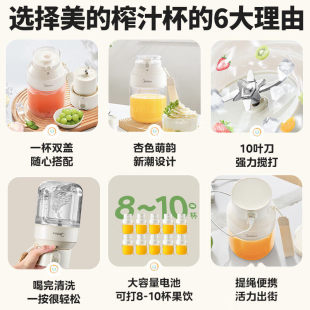 美 电动水果搅拌机双盖迷你榨汁杯 榨汁机小型家用多功能便携式