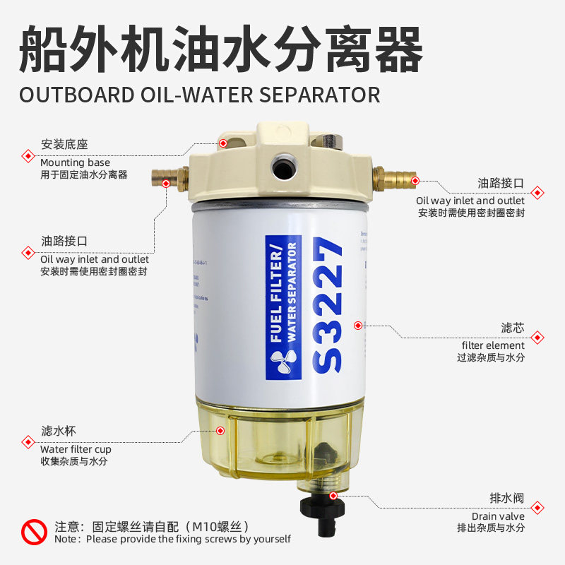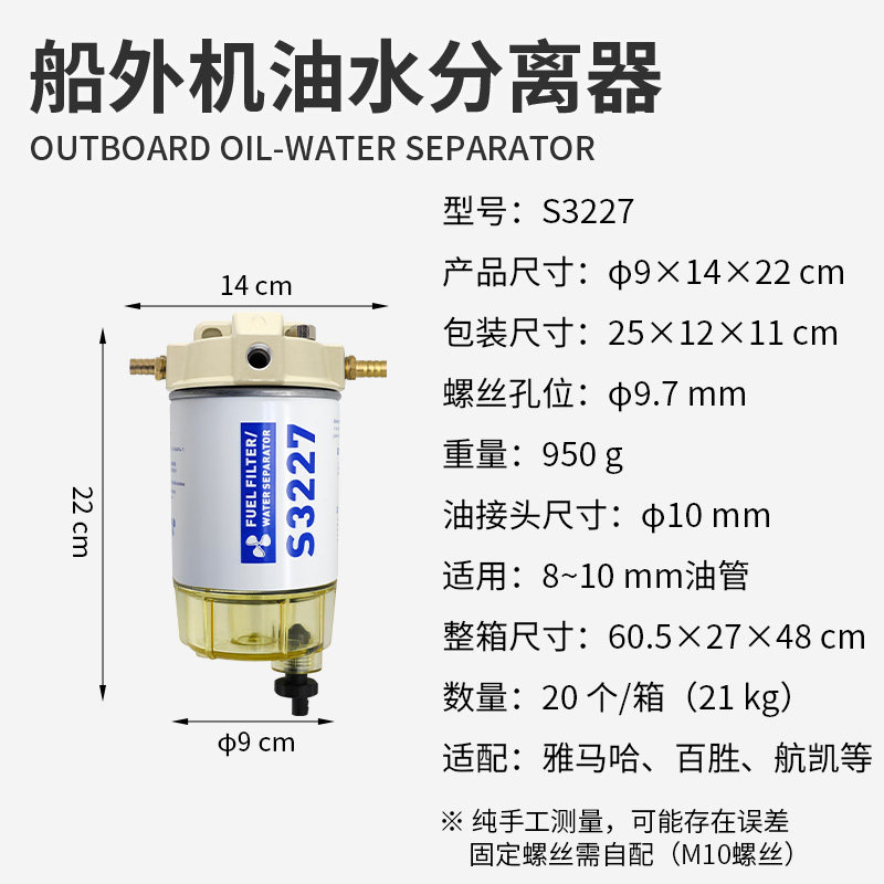 航凯船外机S3227油水分离器总成 船用发动机汽油舷外机通用过滤器