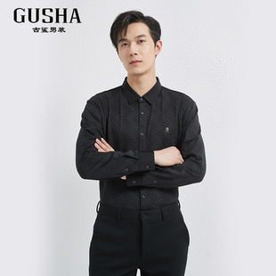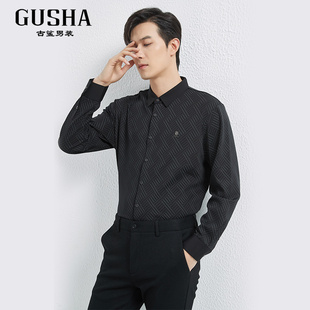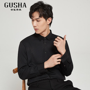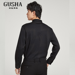 衬衫 古鲨黑色长袖 男商务不易皱直筒加厚保暖衬衣冬 加绒条纹