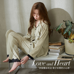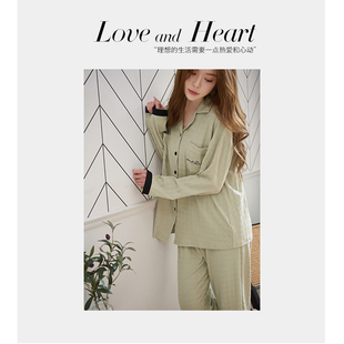 翻领宽松家居服套装 JoyceBra 长袖 简约撞色德绒睡衣女秋冬季 韩版