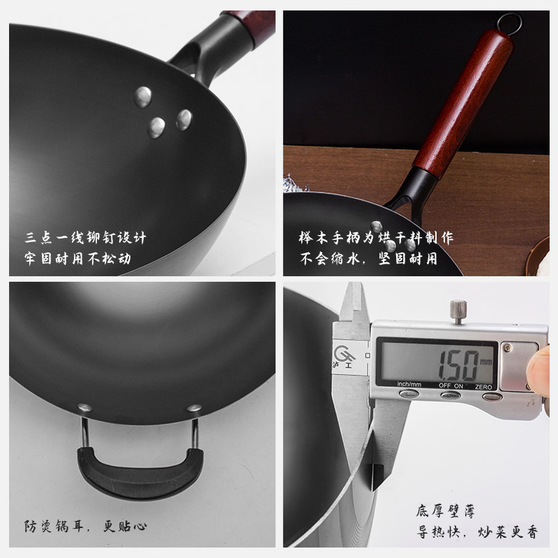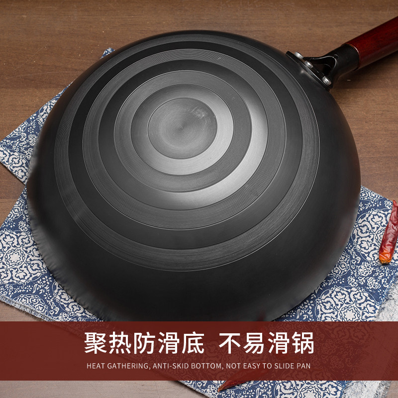 黄老大铁锅老式 正宗传统无涂层不粘锅防滑不生锈精铁炒锅燃气灶用