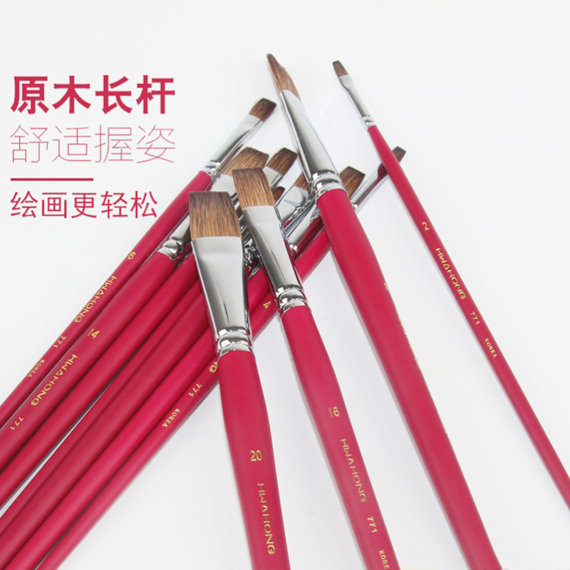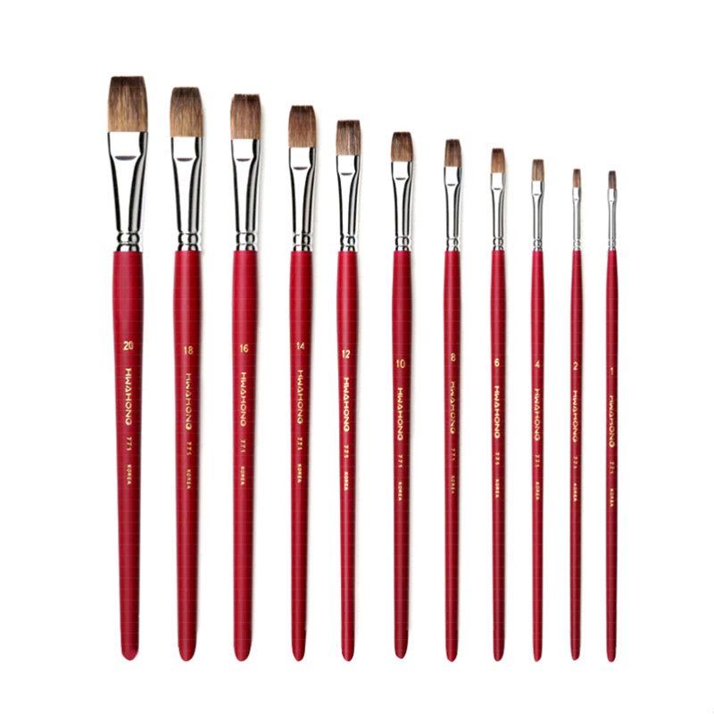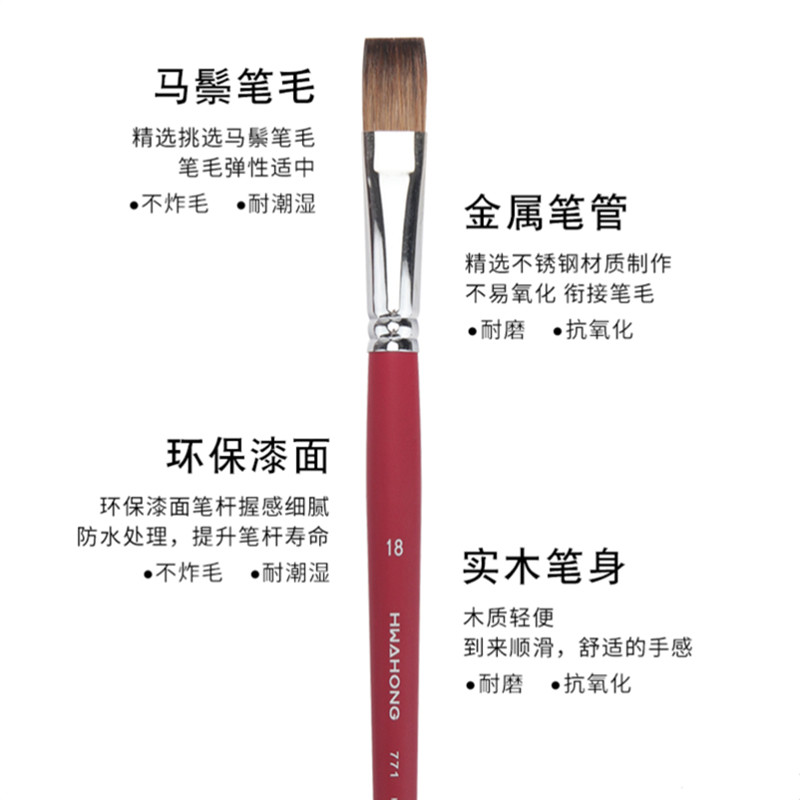 韩国hwahong华虹马毛平头水彩笔771水粉笔马鬃油画丙烯排笔刷单支