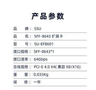 X4转接卡SFF 8643 8639转PCIe U.2扩展卡 SSU NVME U.2转PCI