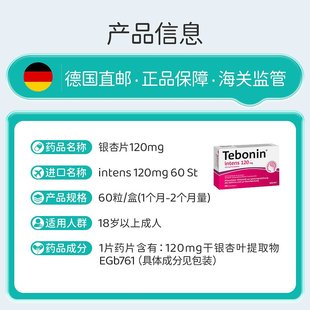 欧洲直邮德国Tebonin德葆宁120mg60粒银杏提取物成人记忆力益脑